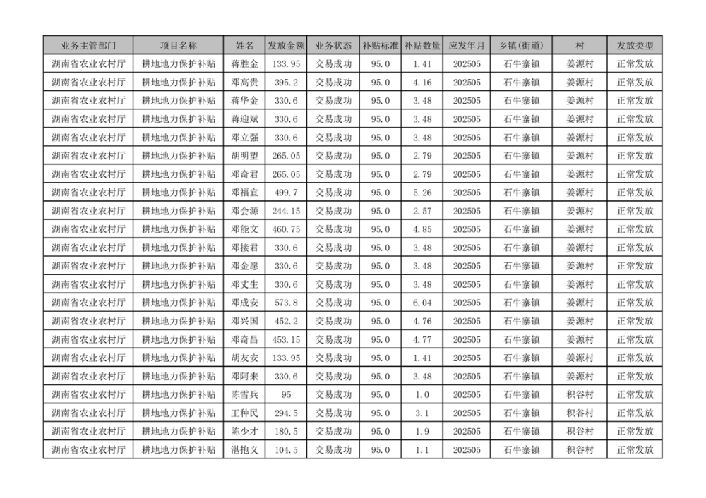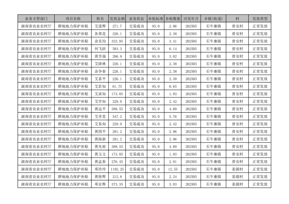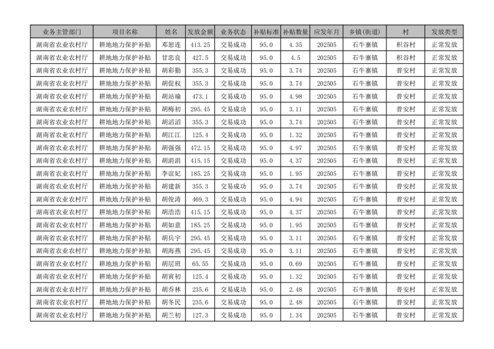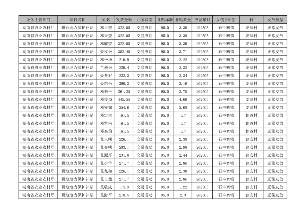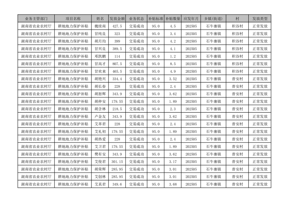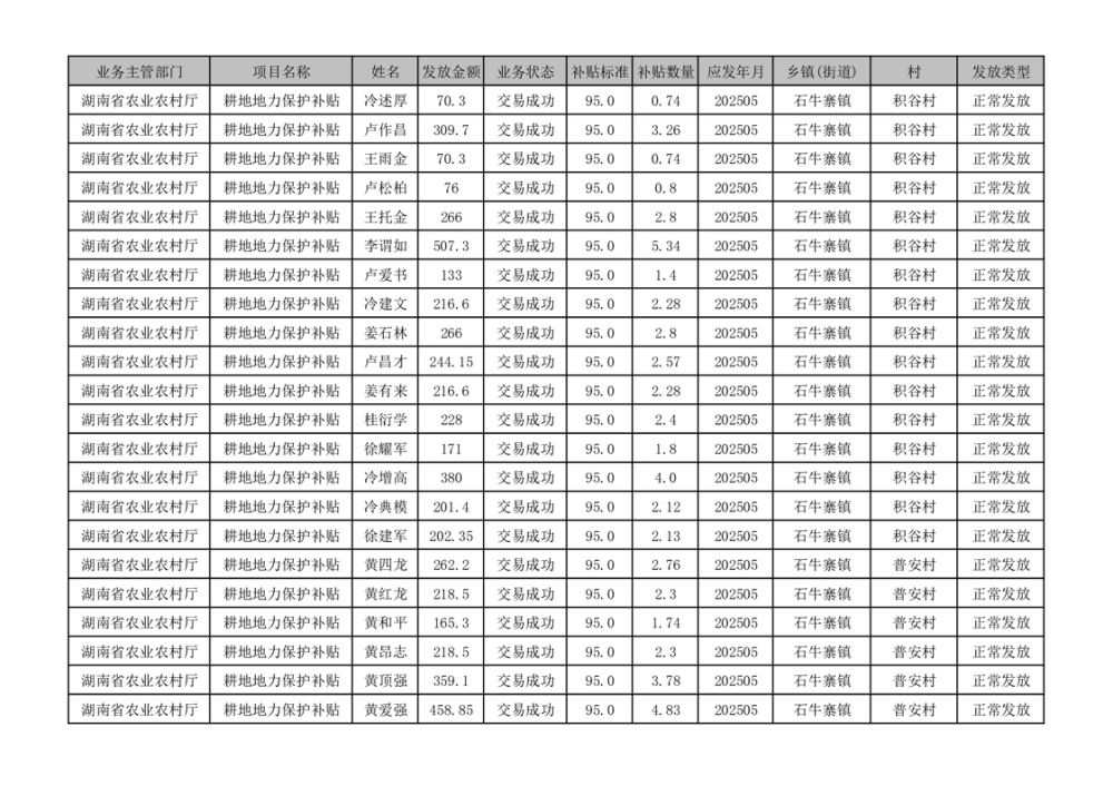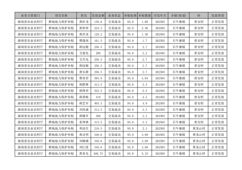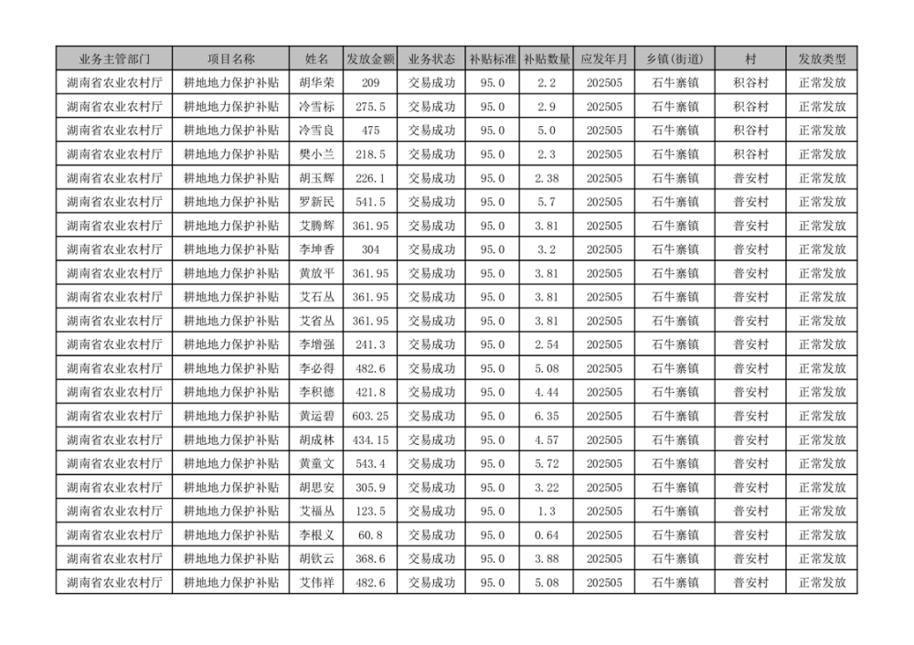 2025石牛寨镇耕地地力补贴发放2(普安、石牛、姜源、积谷、黄龙山)
