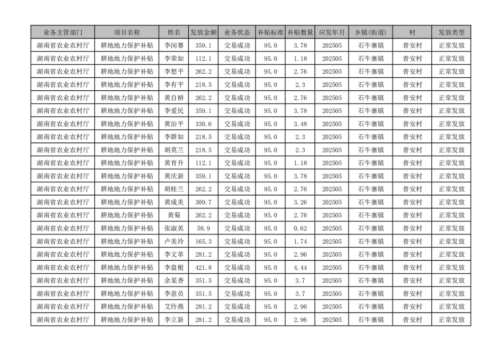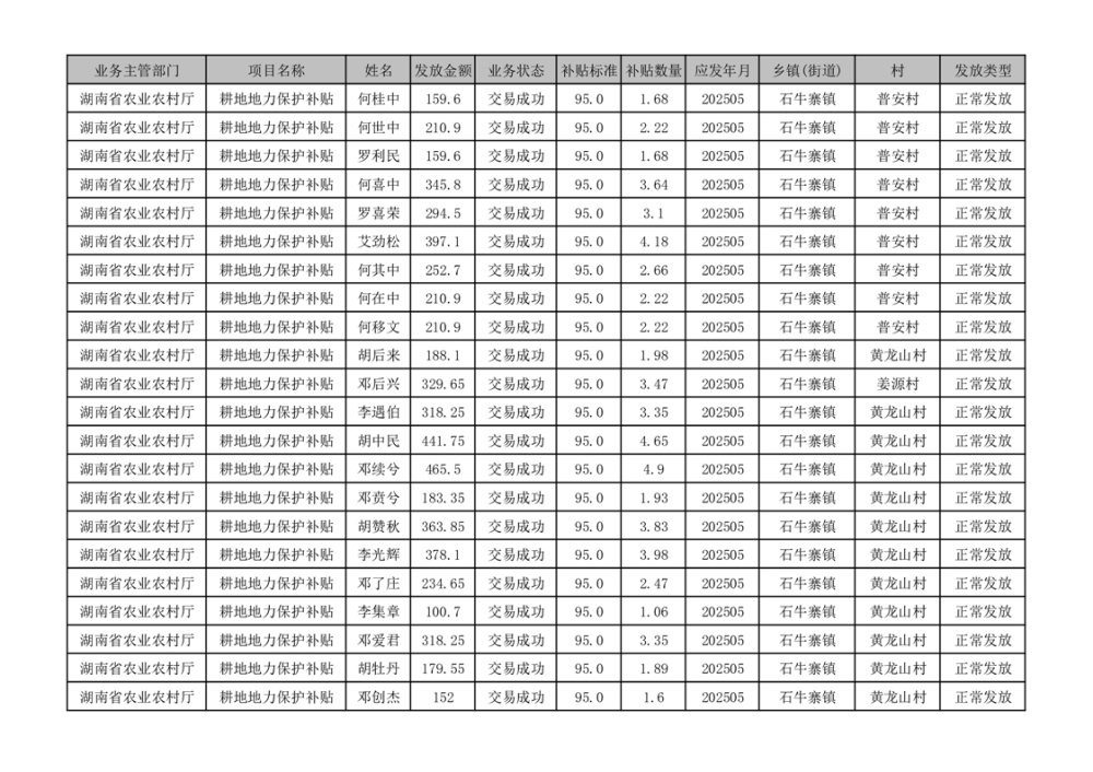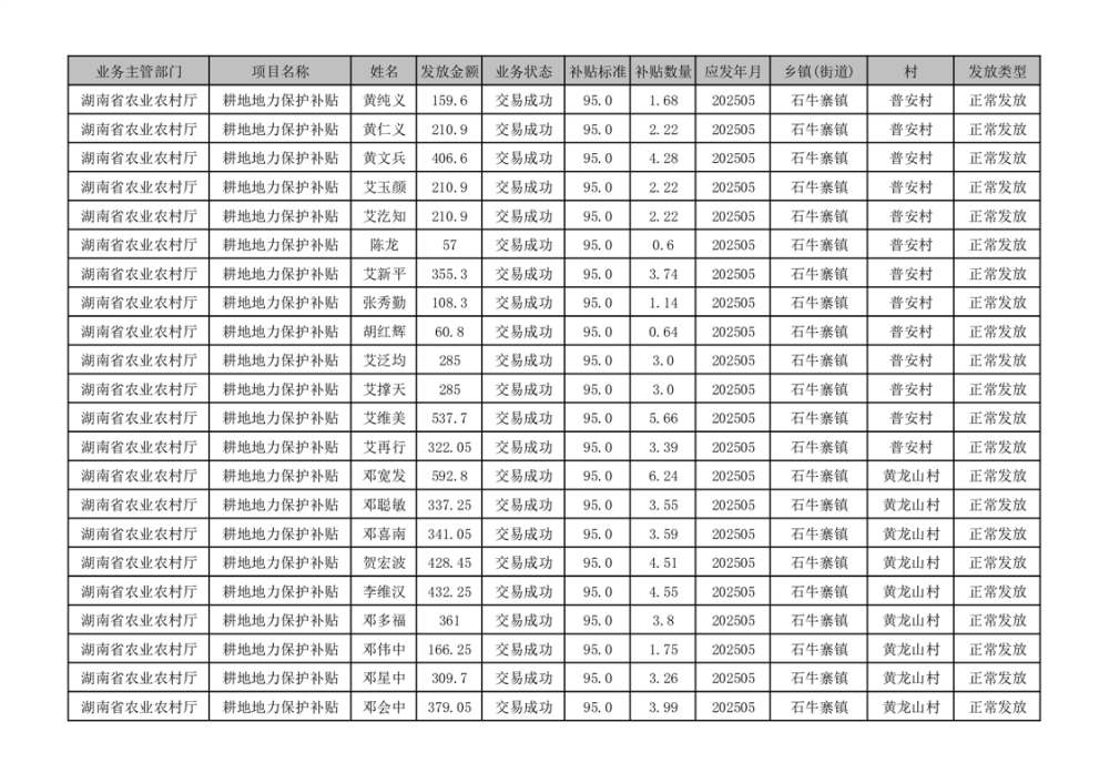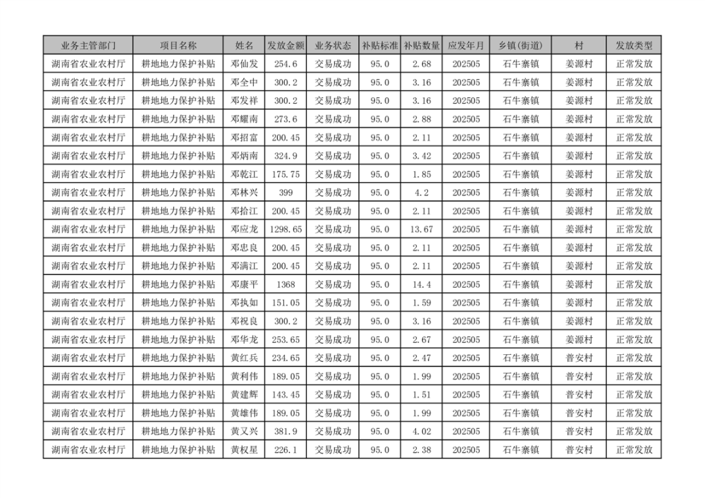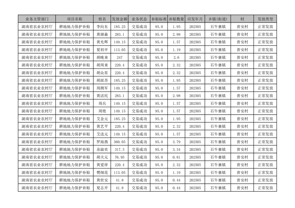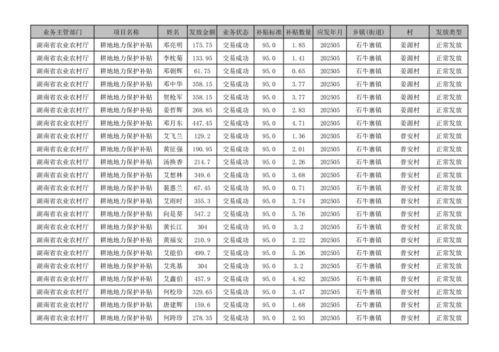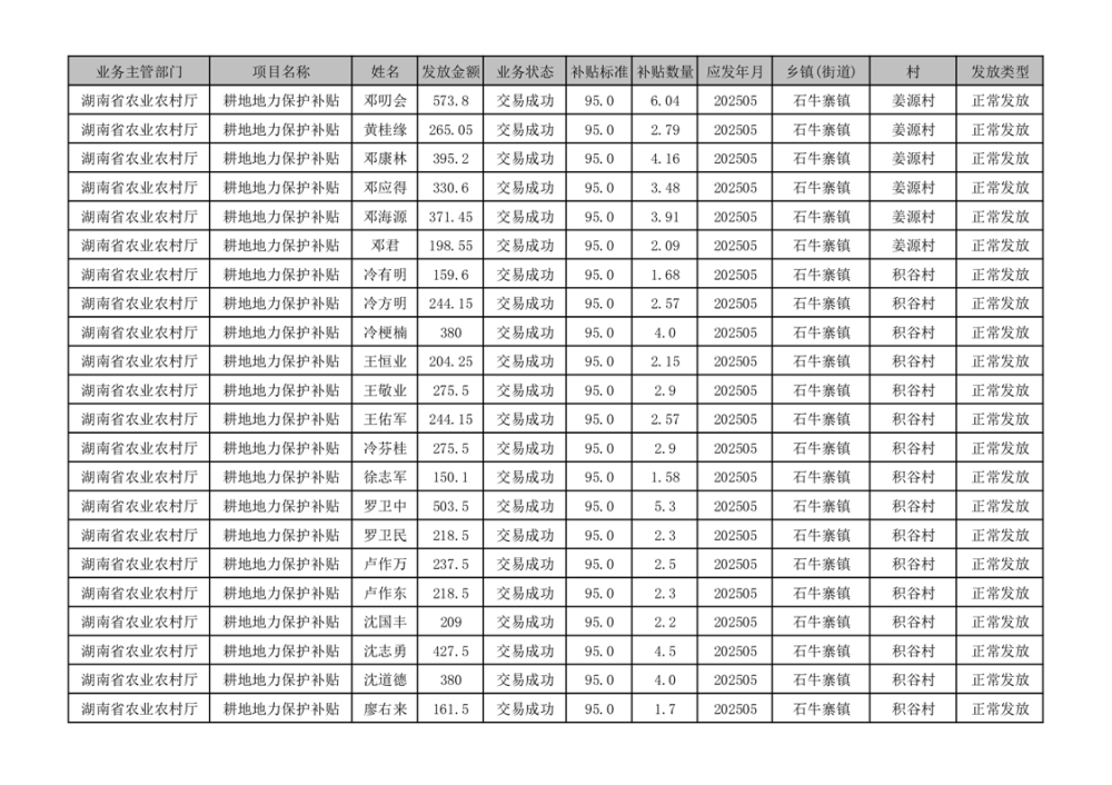 2025石牛寨镇耕地地力补贴发放2(普安、石牛、姜源、积谷、黄龙山)