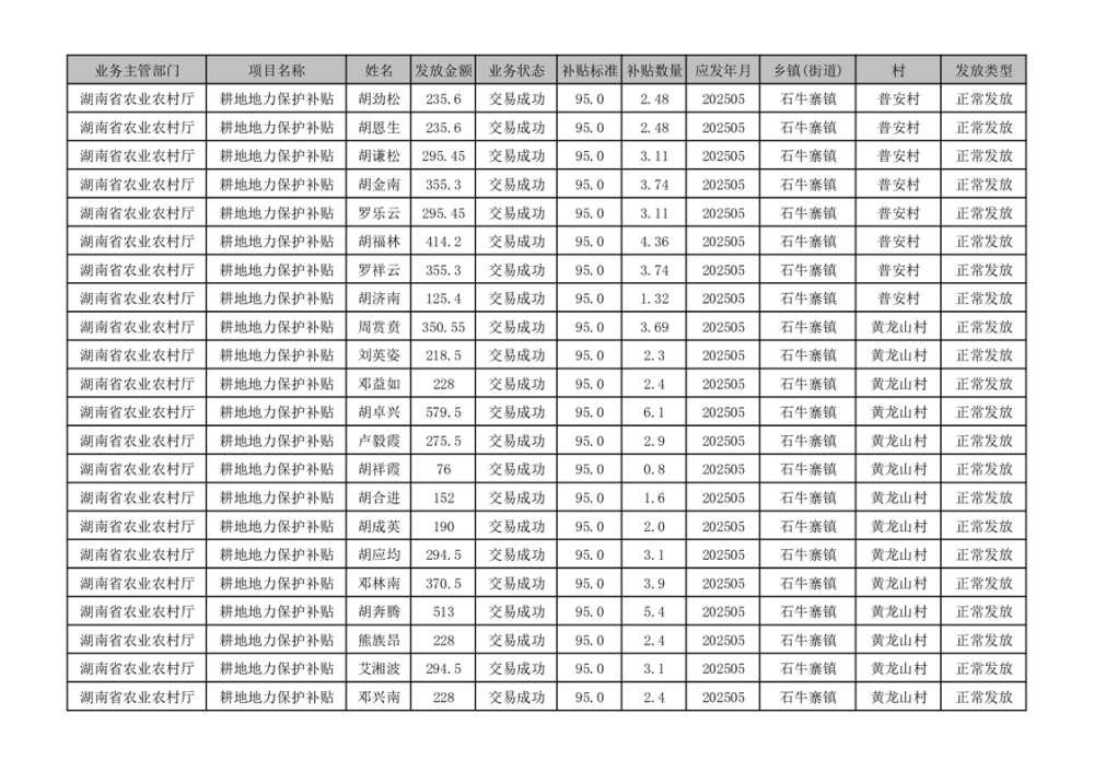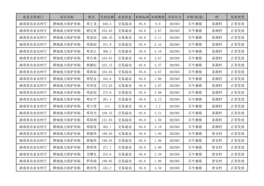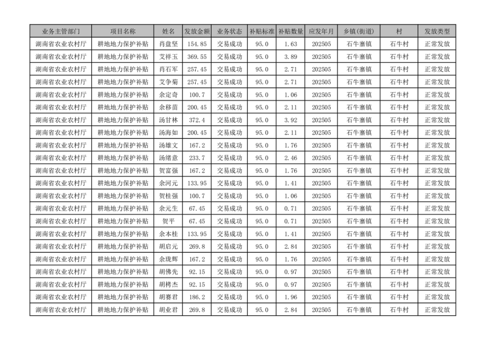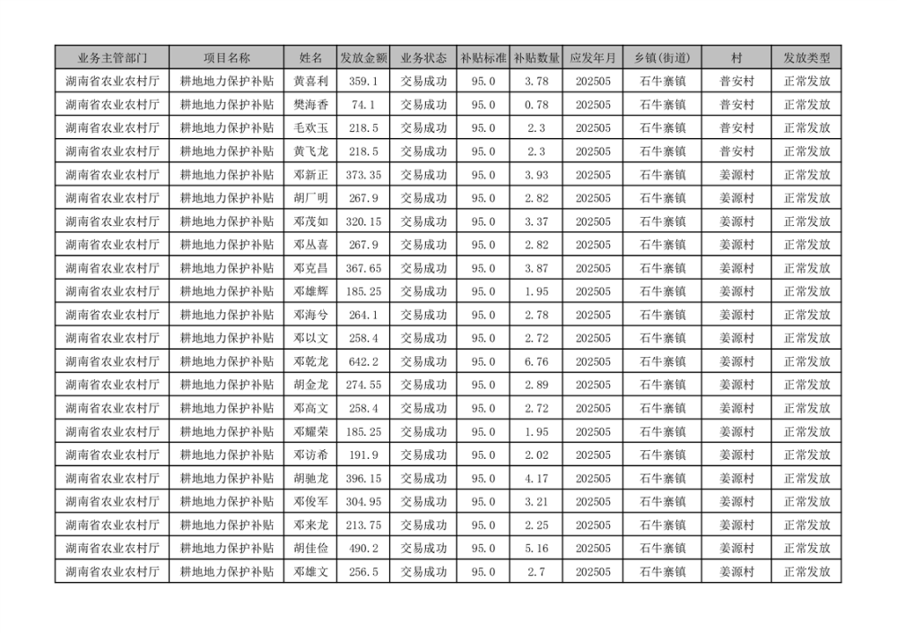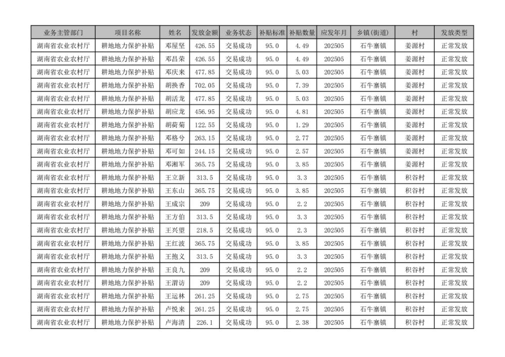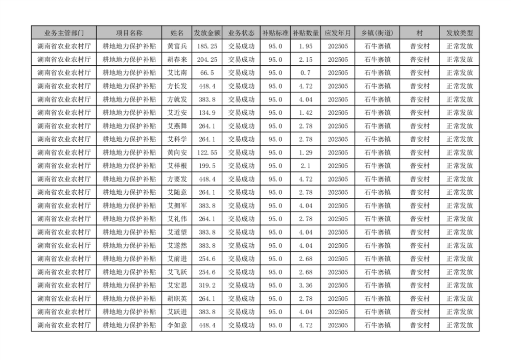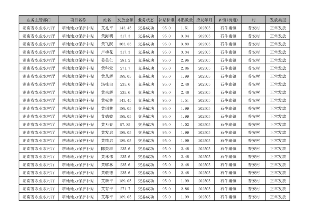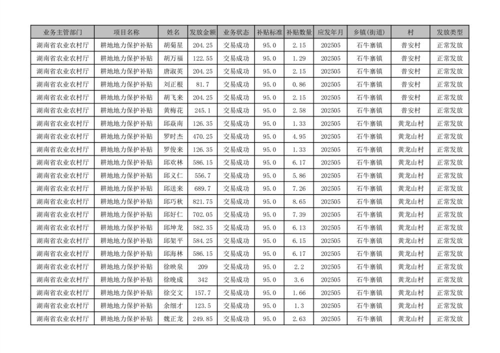 2025石牛寨镇耕地地力补贴发放2(普安、石牛、姜源、积谷、黄龙山)