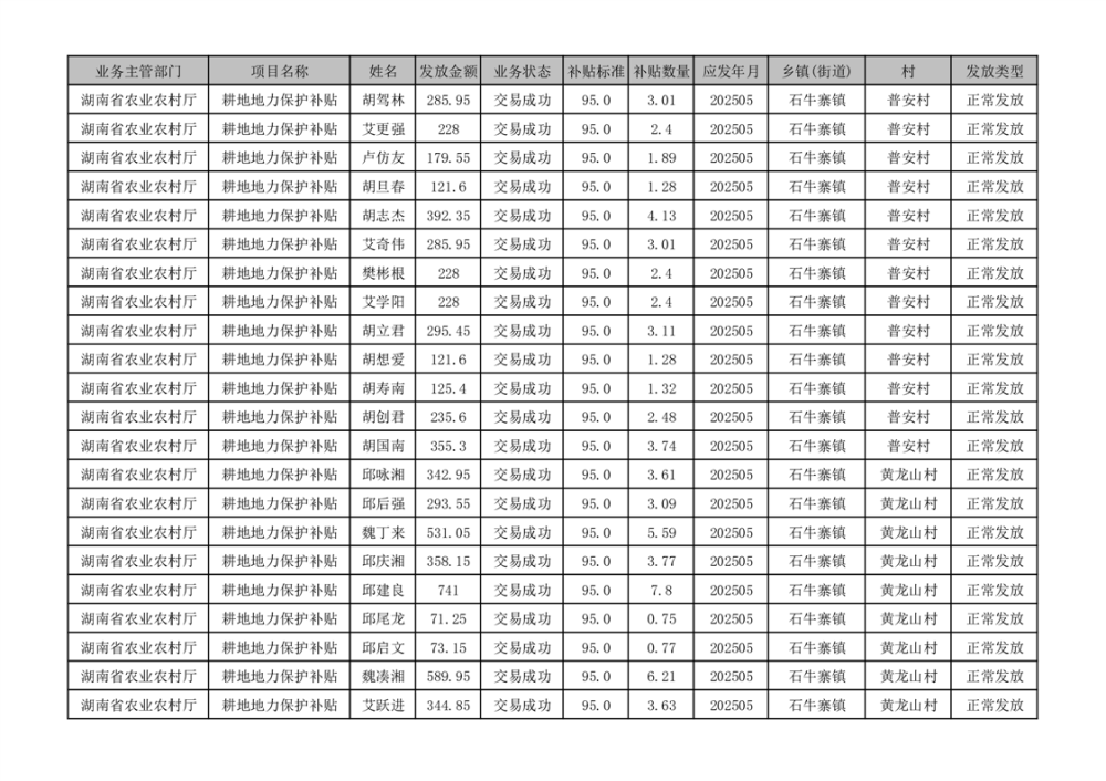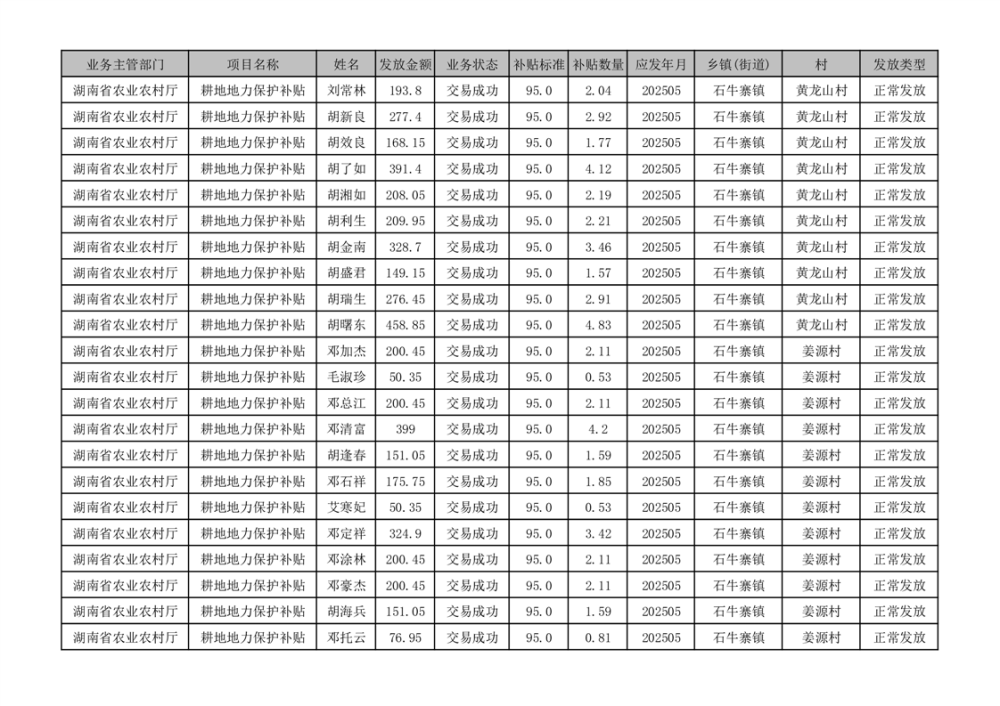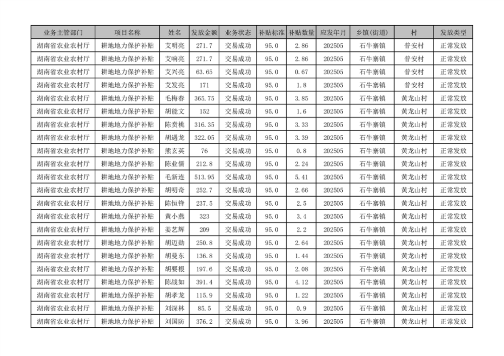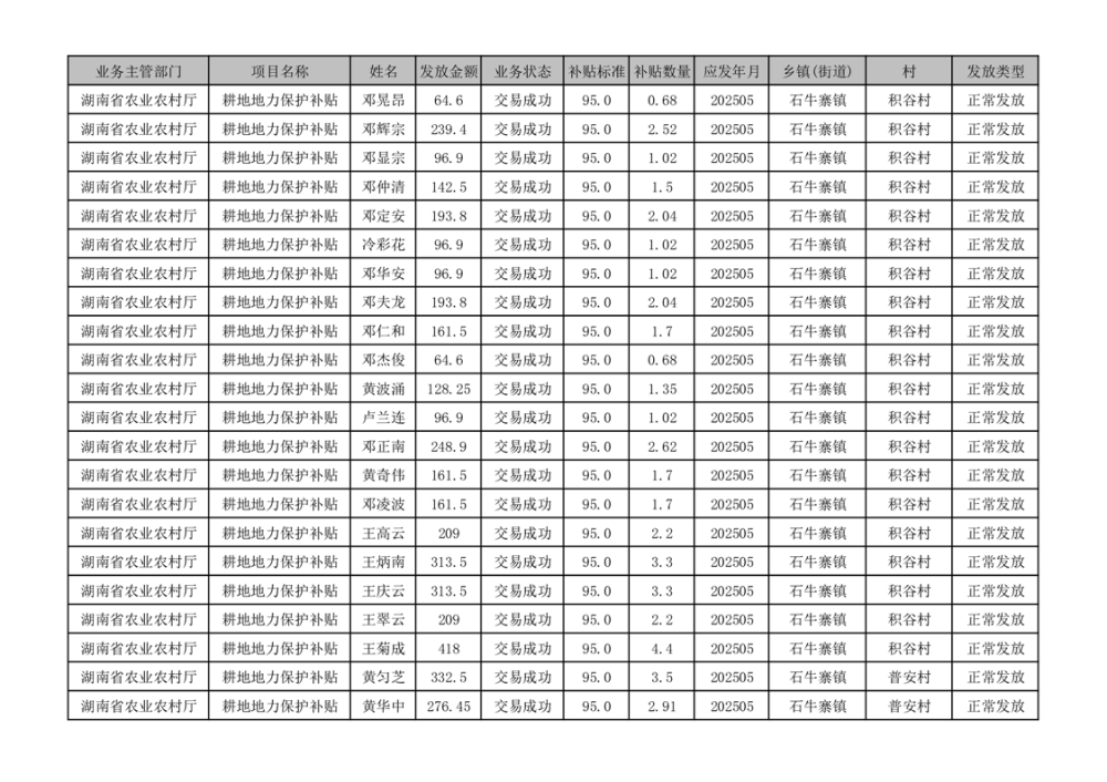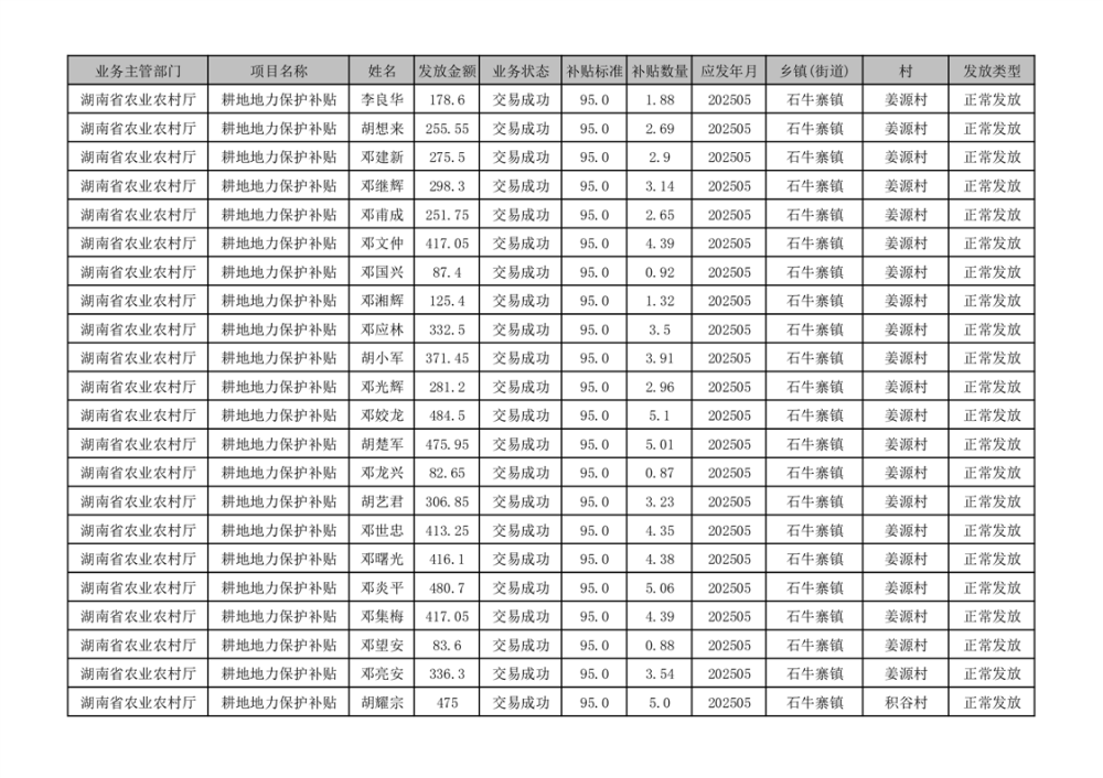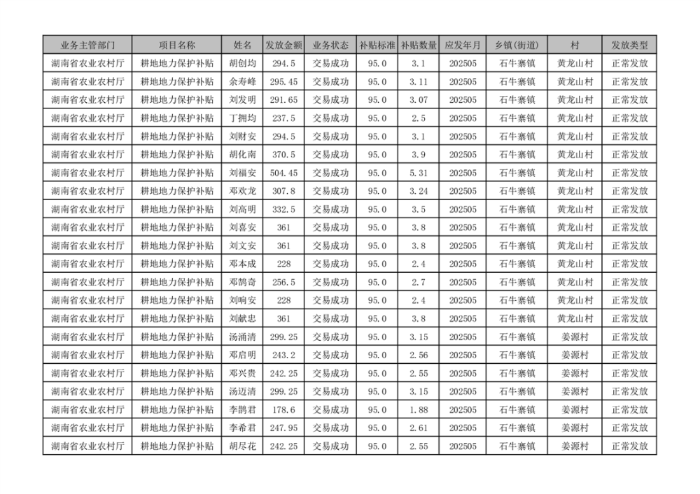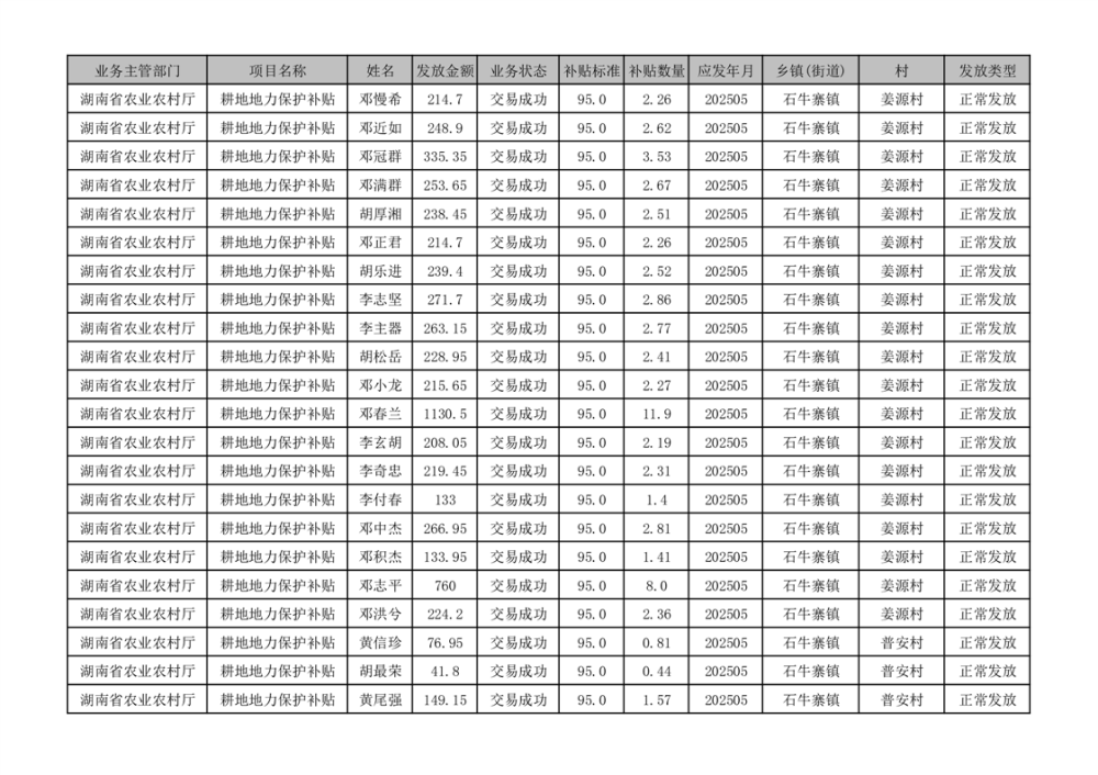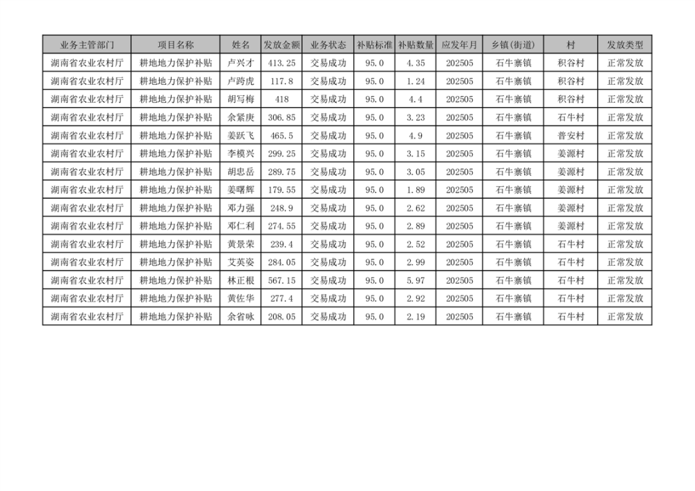 2025石牛寨镇耕地地力补贴发放2(普安、石牛、姜源、积谷、黄龙山)