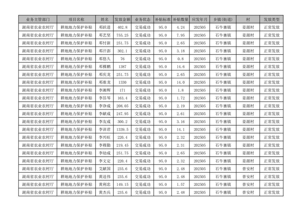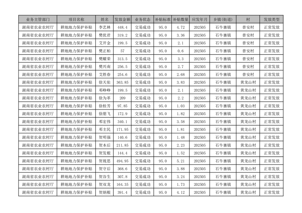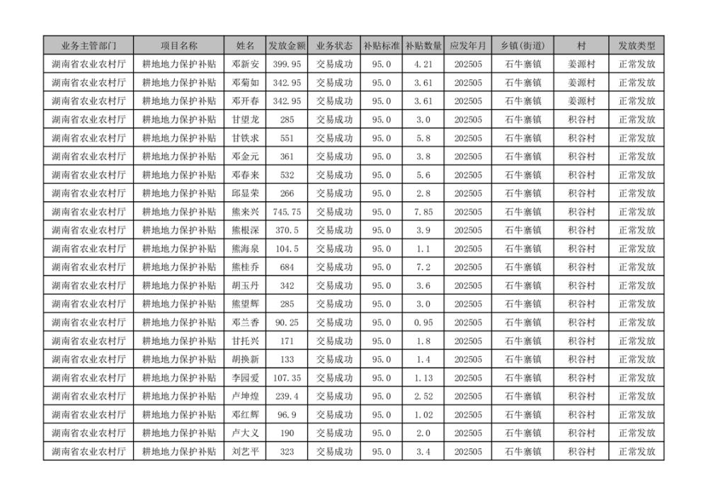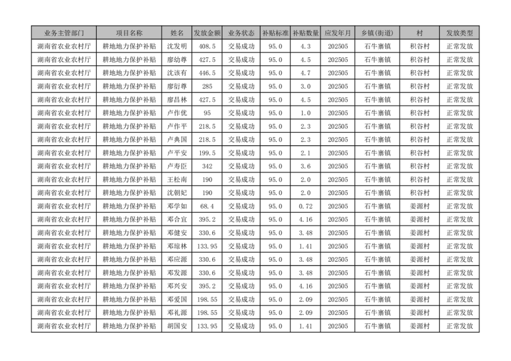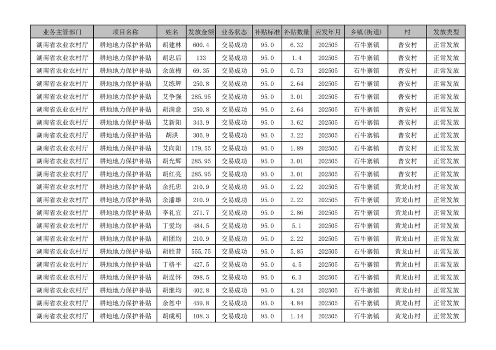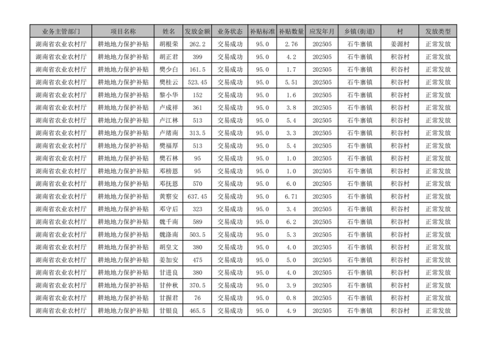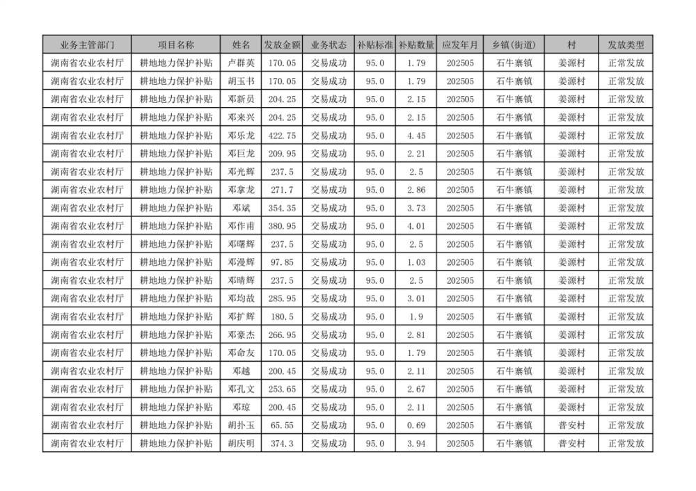 2025石牛寨镇耕地地力补贴发放2(普安、石牛、姜源、积谷、黄龙山)