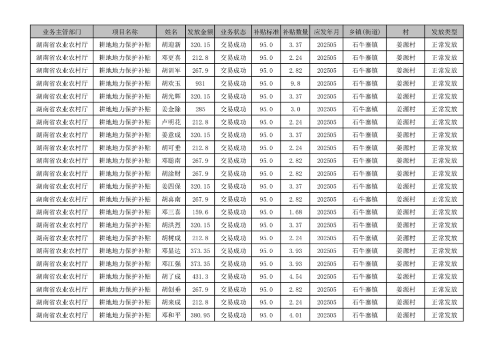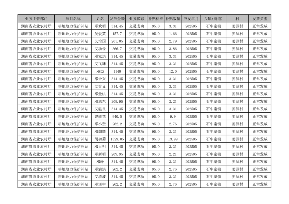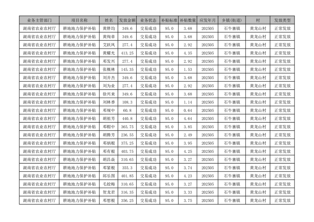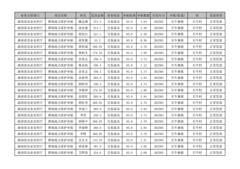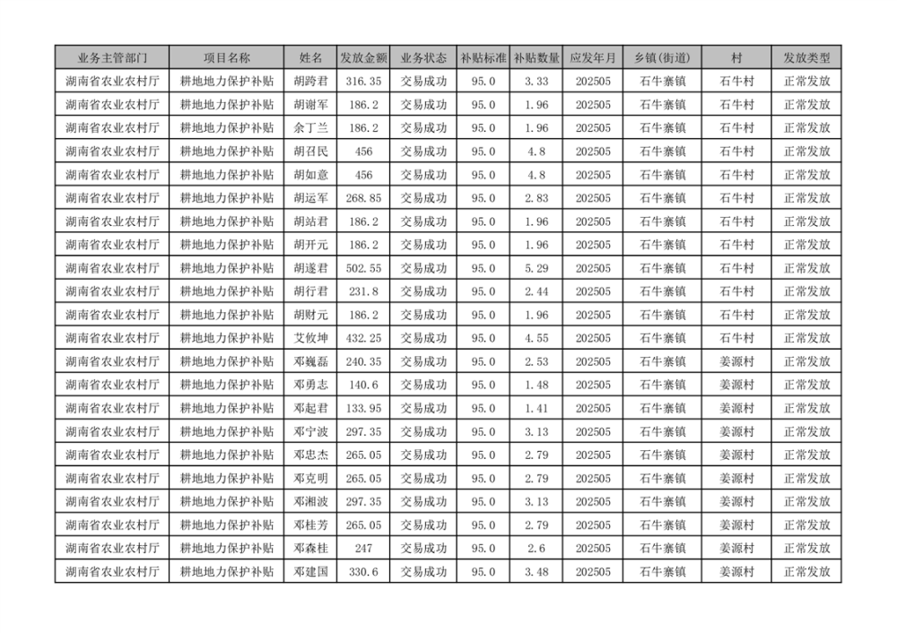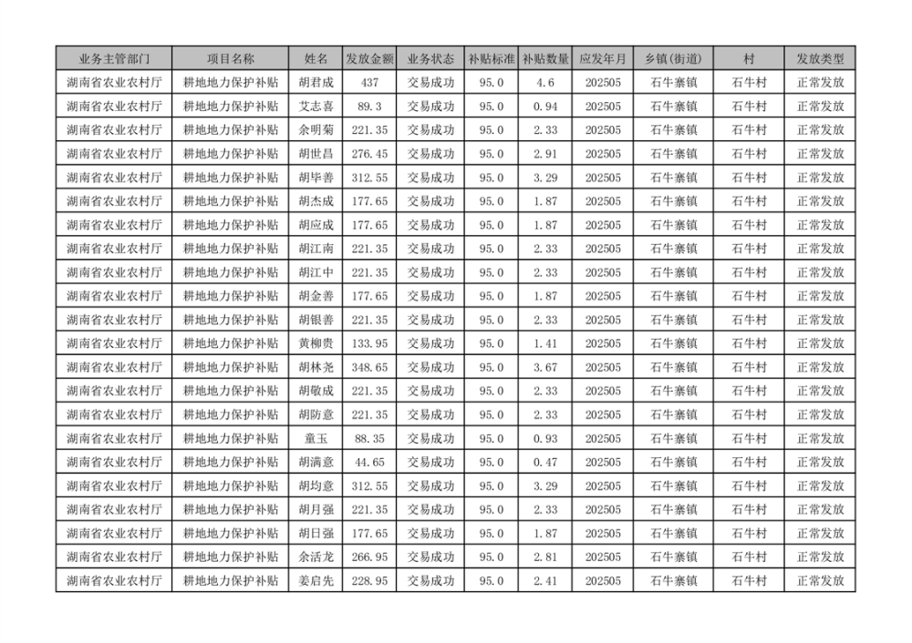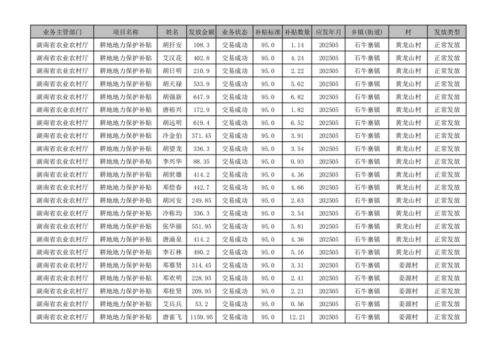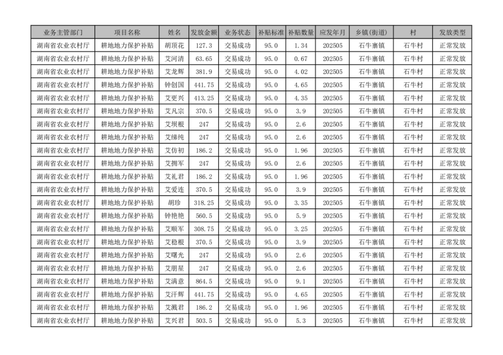 2025石牛寨镇耕地地力补贴发放2(普安、石牛、姜源、积谷、黄龙山)