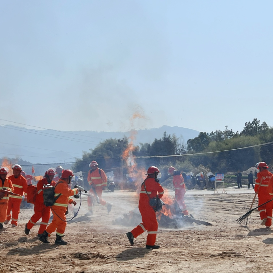 “请队员们携带风力灭火机、背负式水枪前往1号火点进行扑火”“请消防车迅速到达2号火点进行扑火”“请队员们持便携式水枪和铁锹前往3号火点进行扑火”……此次演练在县林业局、县应急管理局的专业指导下,结合我镇森林火灾特点,设置了地表火、树冠火、地下火三种类型。 在指挥人员的科学调度下,各队员严格按照预案分工、火警上报、分析研判等程序立即开展灭火行动。同时,医疗急救组也在一旁随时待命,为可能出现的受伤人员提供及时的救治。最后,无人机巡查现场未发现任何烟点,才确定火势最终扑灭。整个演练过程组织严密、忙而不乱。