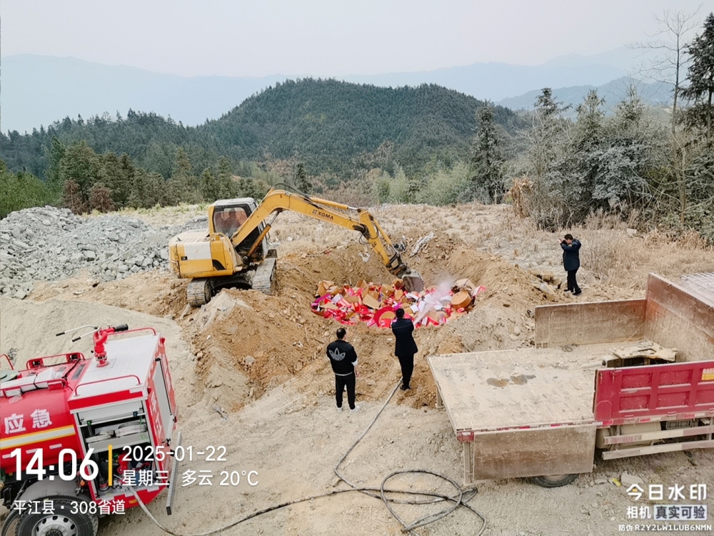 1月22日下午,南江镇组织开展烟花爆竹集中销毁行动,集中拆解、浸水、深埋1955件非法烟花爆竹。