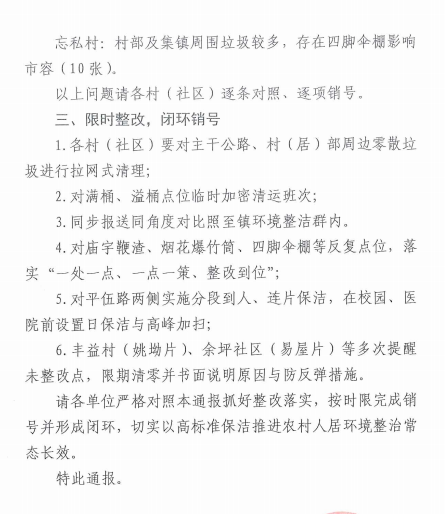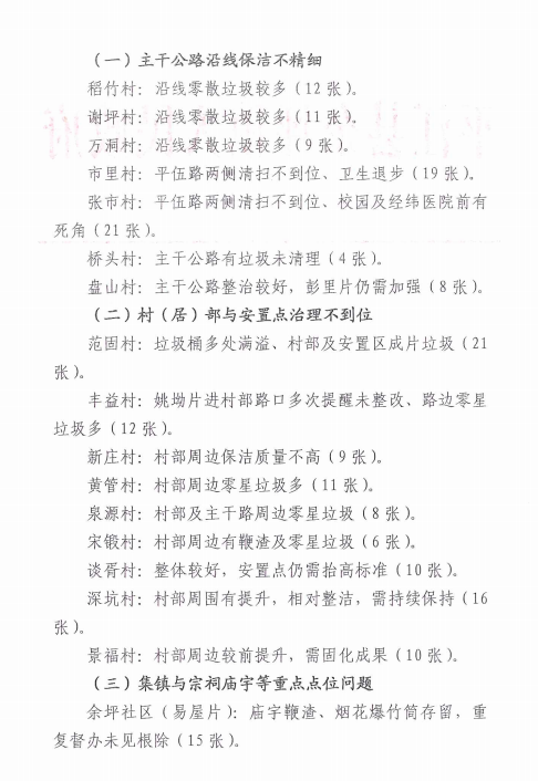 余坪镇八月份环境卫生督查情况通报