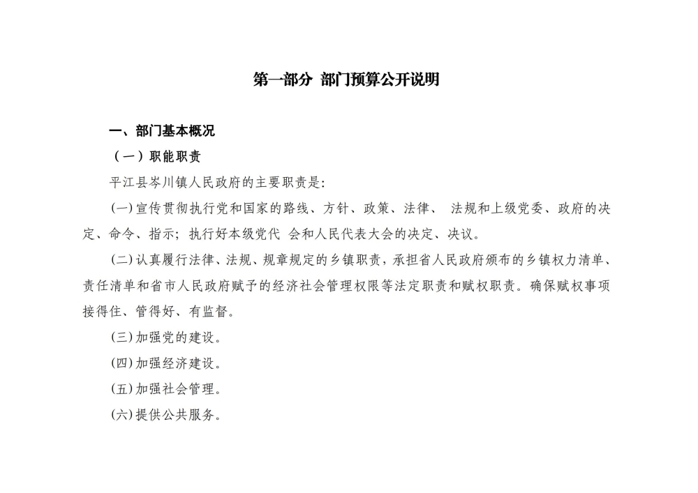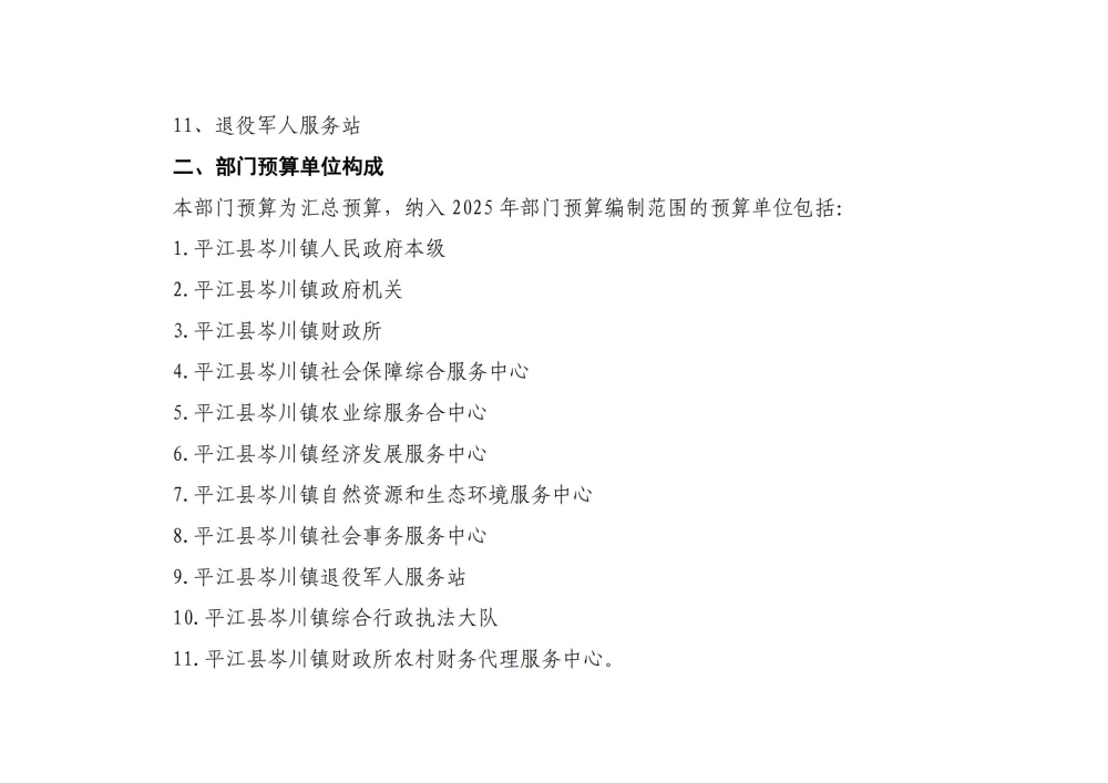平江县岑川镇2025年部门预算编报说明及整体绩效目标公开