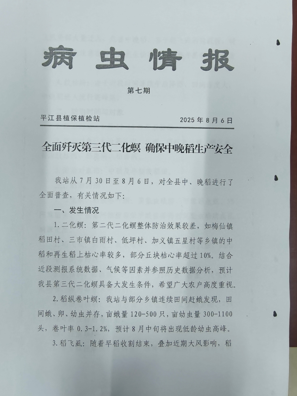 转发2025年病虫情报第七期