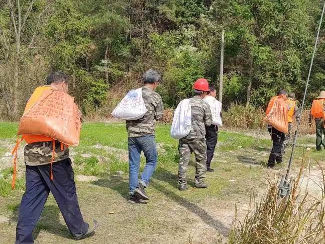 在小水村的演练现场,共计15名应急队伍队员在干泷水库大堤及周边低洼地带开展防汛应急综合演练,演练人员分为多个小组,分别进行了水库溢水沙袋加固等防汛抢险任务的模拟操作。救援组成员进行了沿库居民紧急转移、受困群众现场救治,以确保在真实灾害发生时能够迅速有效地保护人民群众的生命安全。随后组织开展森林防火演练,防火工作负责人现场讲解干粉灭火器、消防鞭等工具的性能、使用方法及日常维护保养,整个演练过程,各司其职,反应迅速,配合默契有序开展。