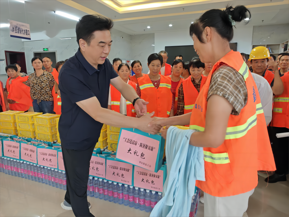 “这么热的天,你们还惦记着我们,送来这么多东西,真是太暖心了!”一位年长的环卫工人接过沉甸甸的慰问物资时,眼角带着笑意,激动地说道。8月1日,平江县总工会联合平江高新区工会联合会开展“夏送清凉”慰问活动,为高温下坚守岗位的环卫工人、铁金刚工地工人送去盛夏里的清凉与关怀。