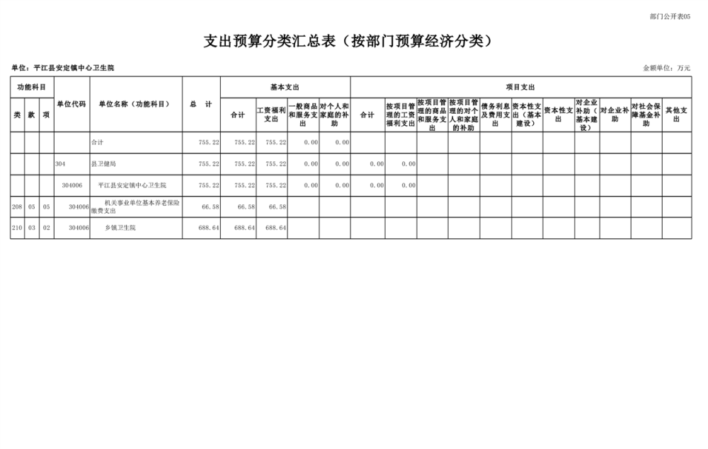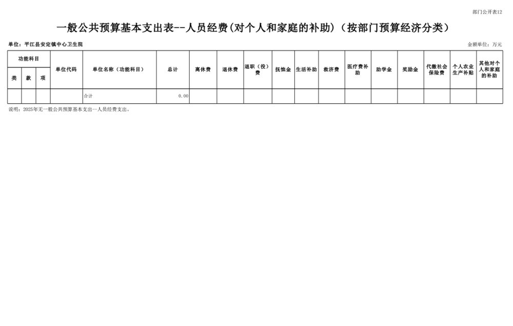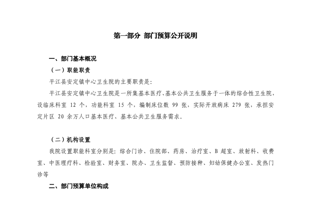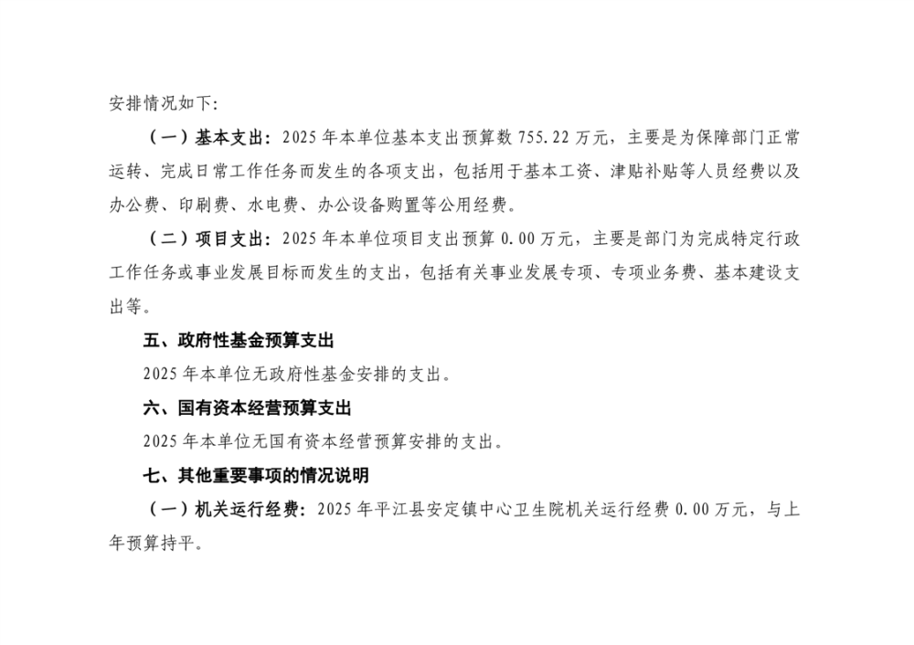 安定卫生院2025年部门预算公开说明