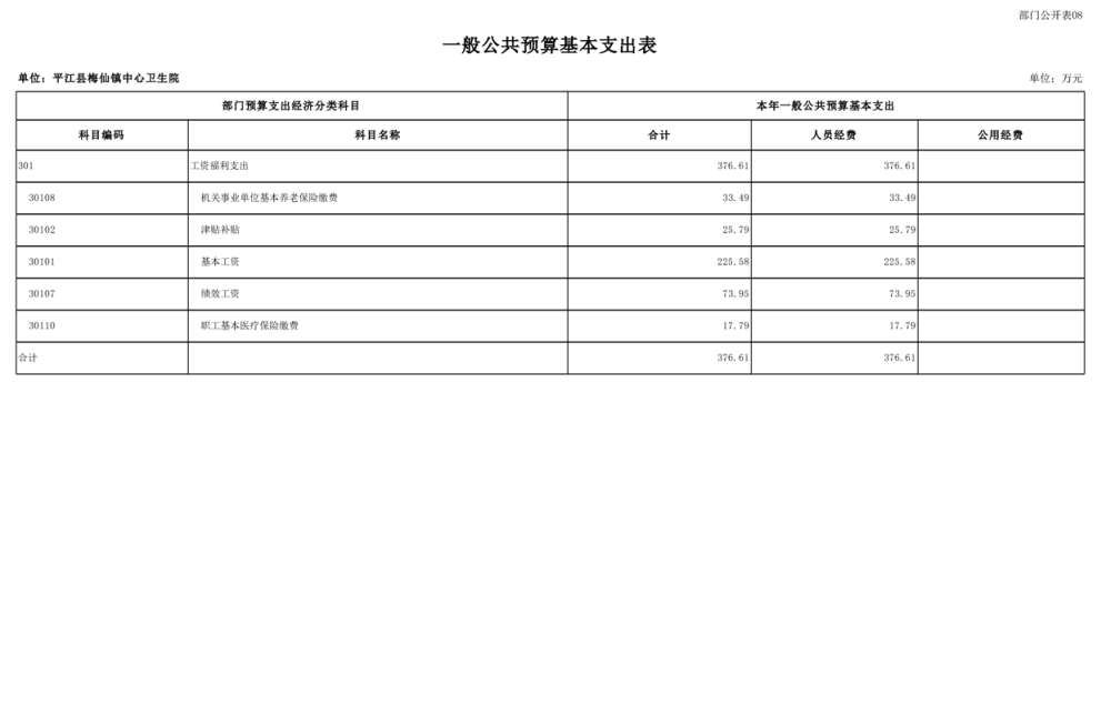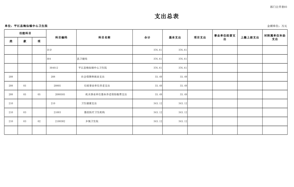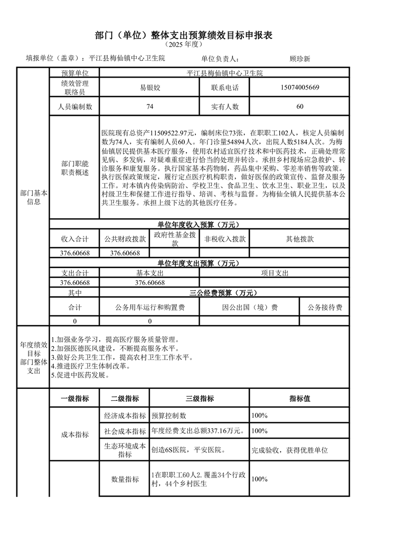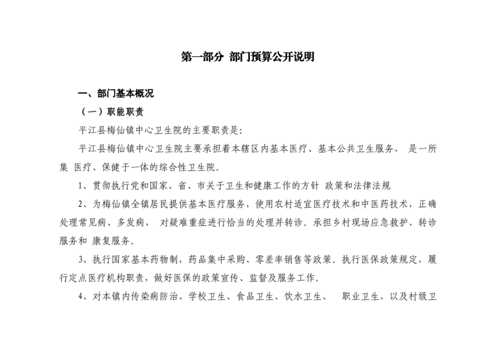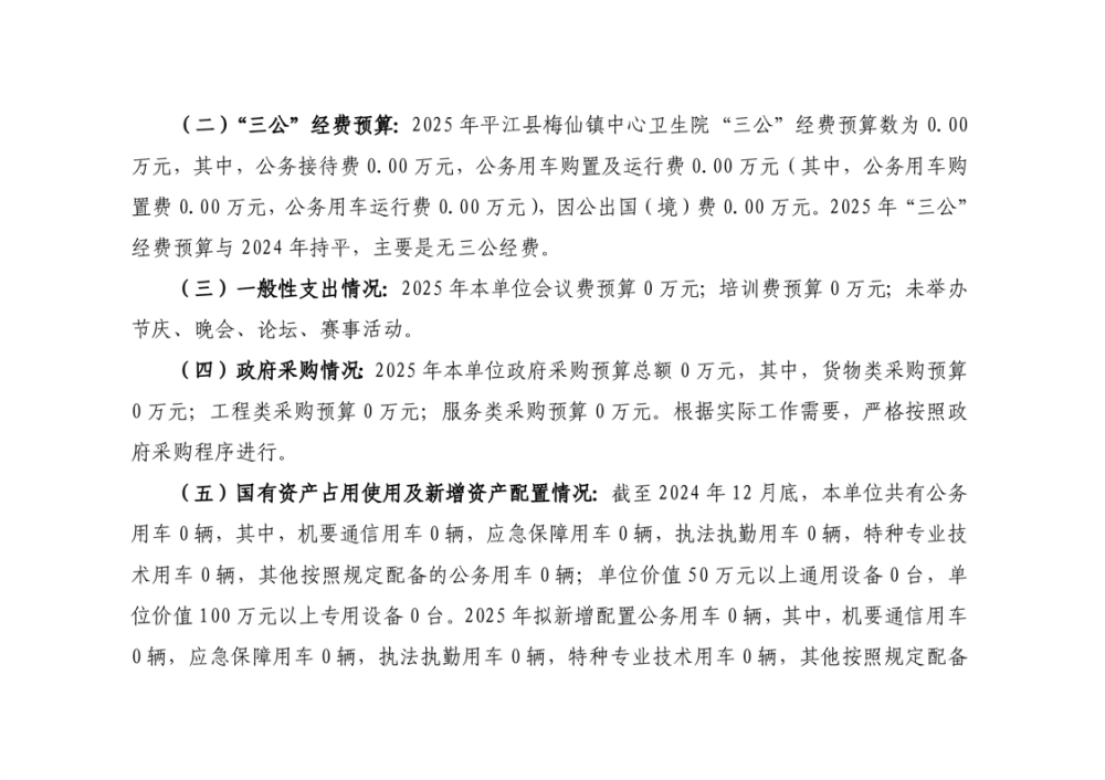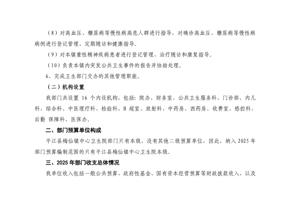 梅仙卫生院2025年部门预算公开说明