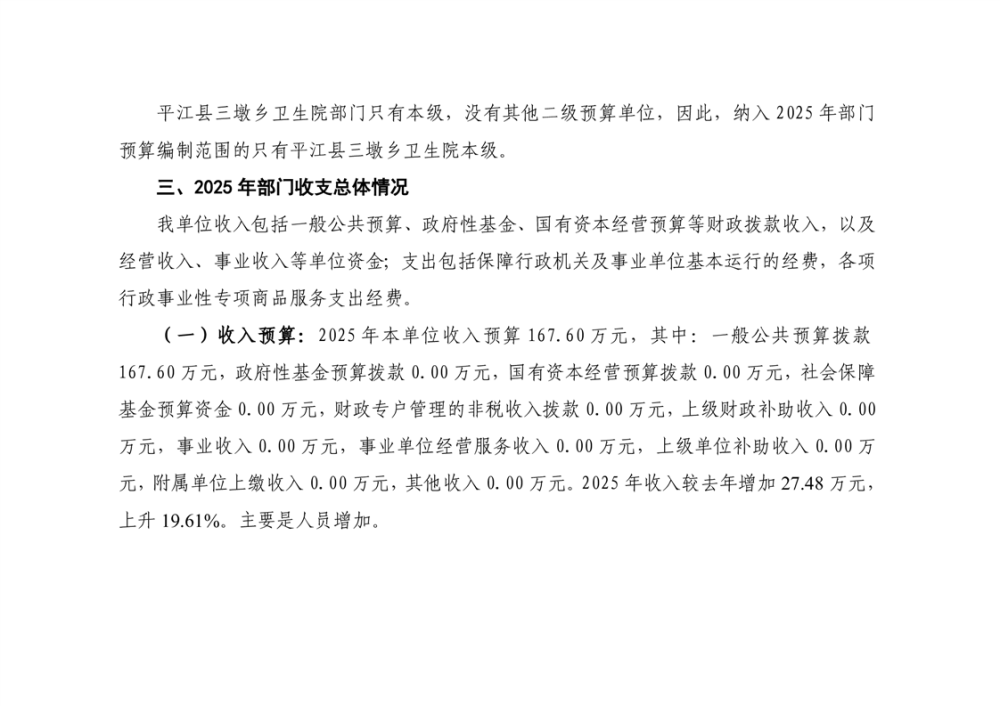 三墩卫生院2025年部门预算公开说明