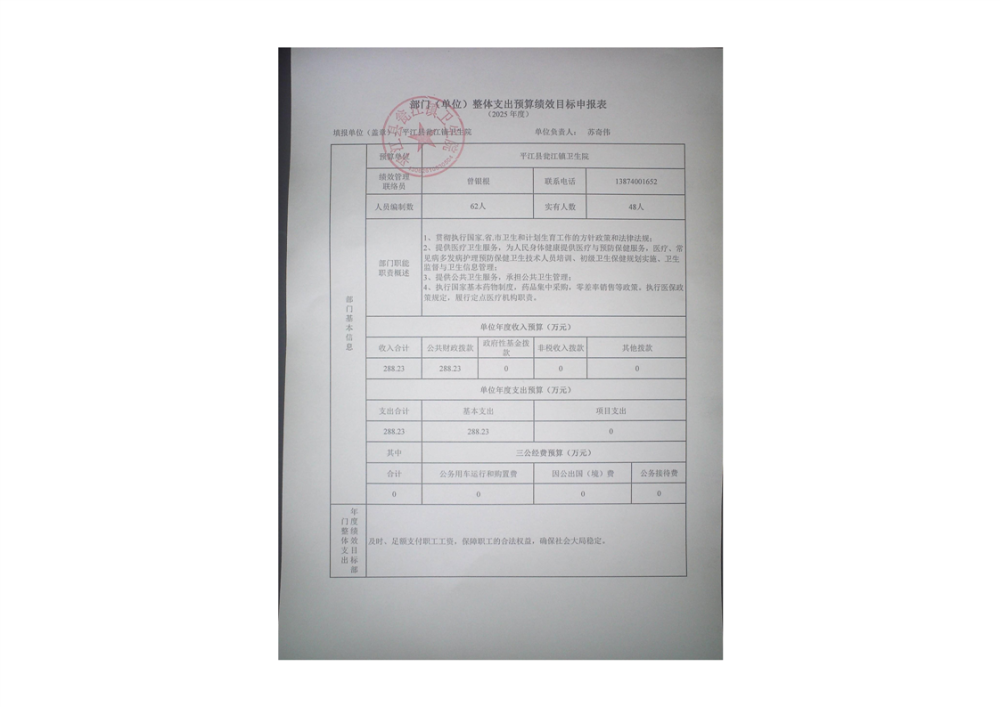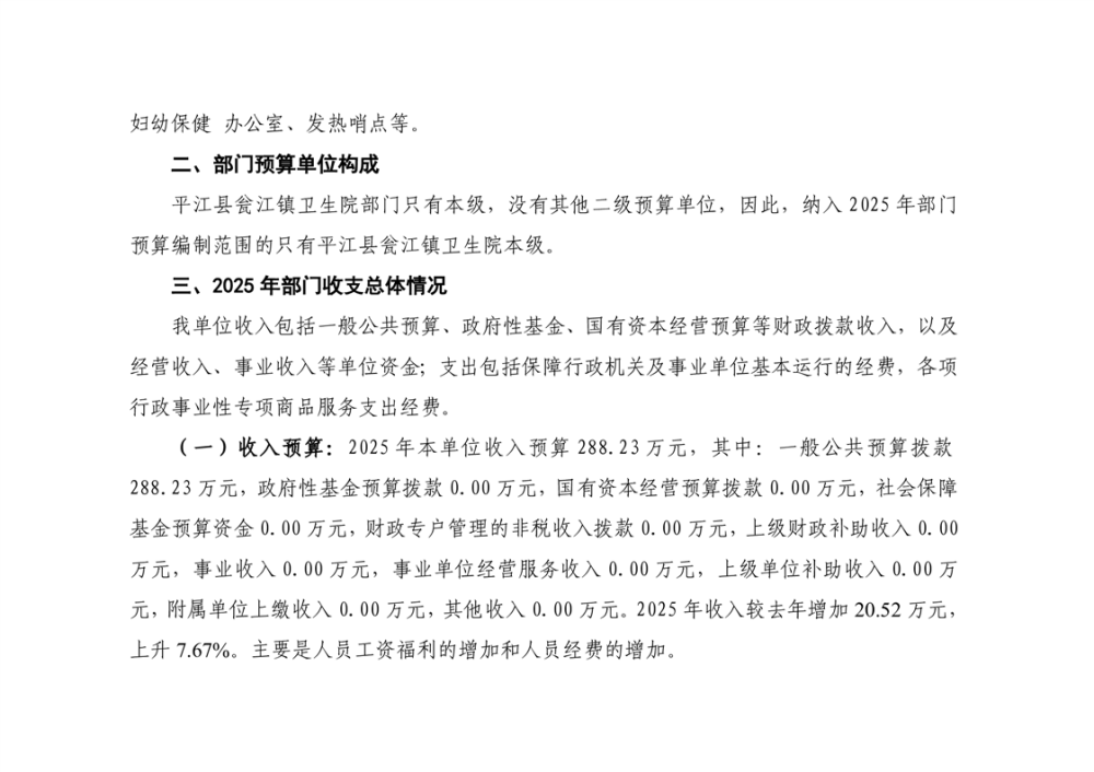 瓮江镇卫生院2025年部门预算公开说明