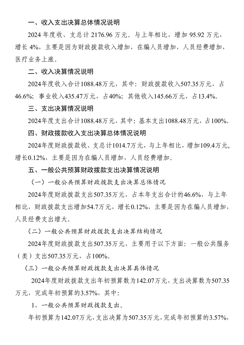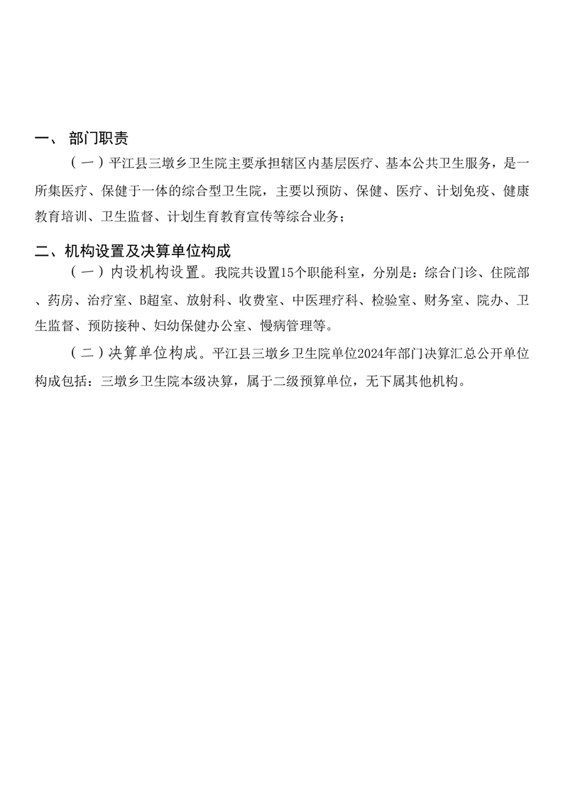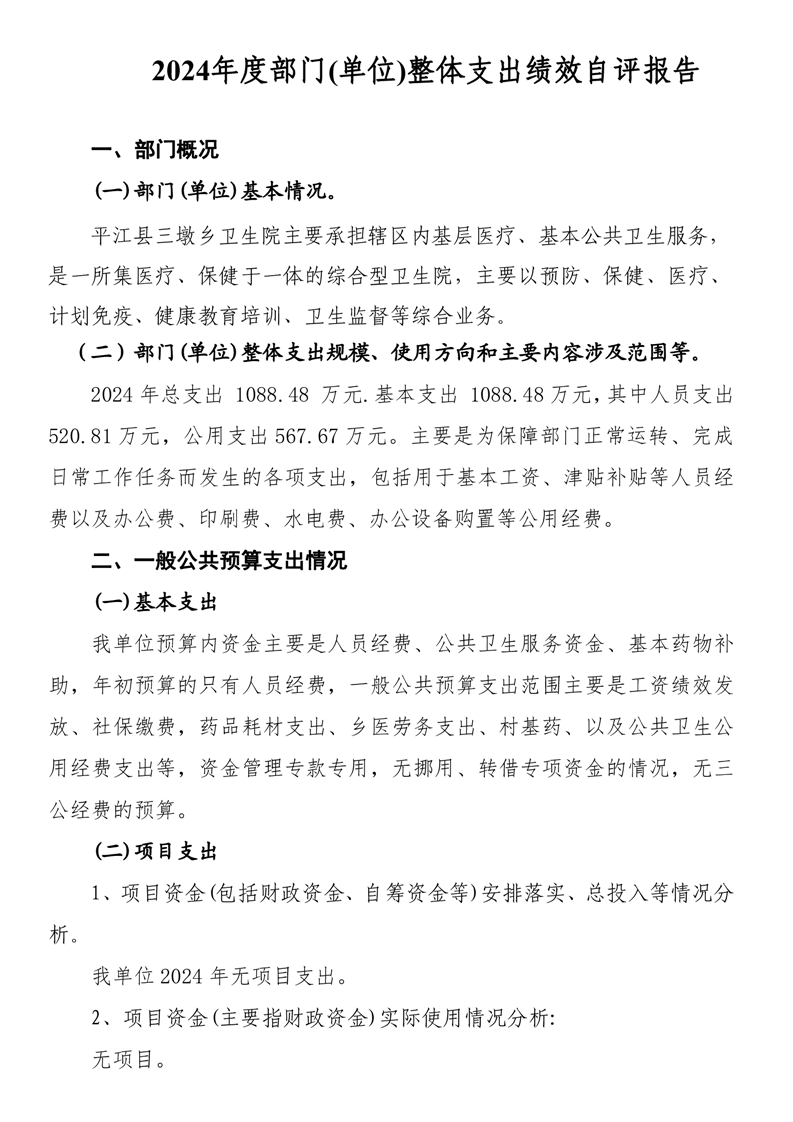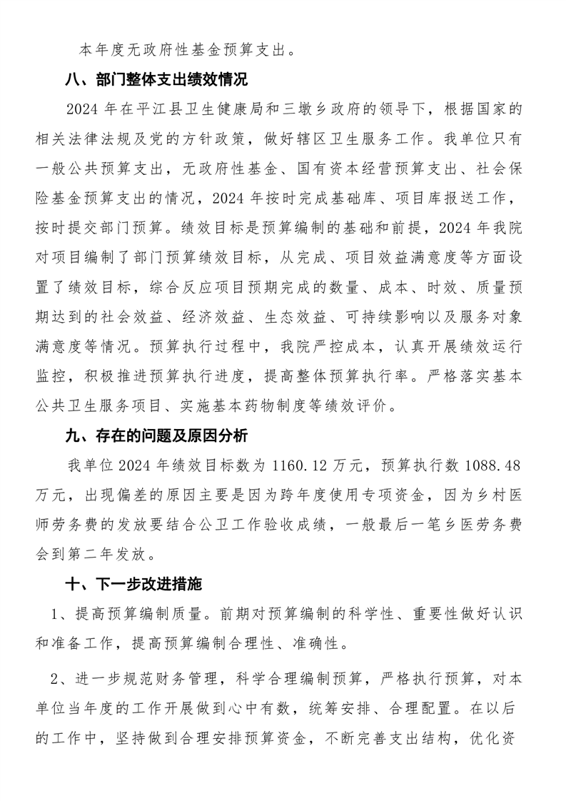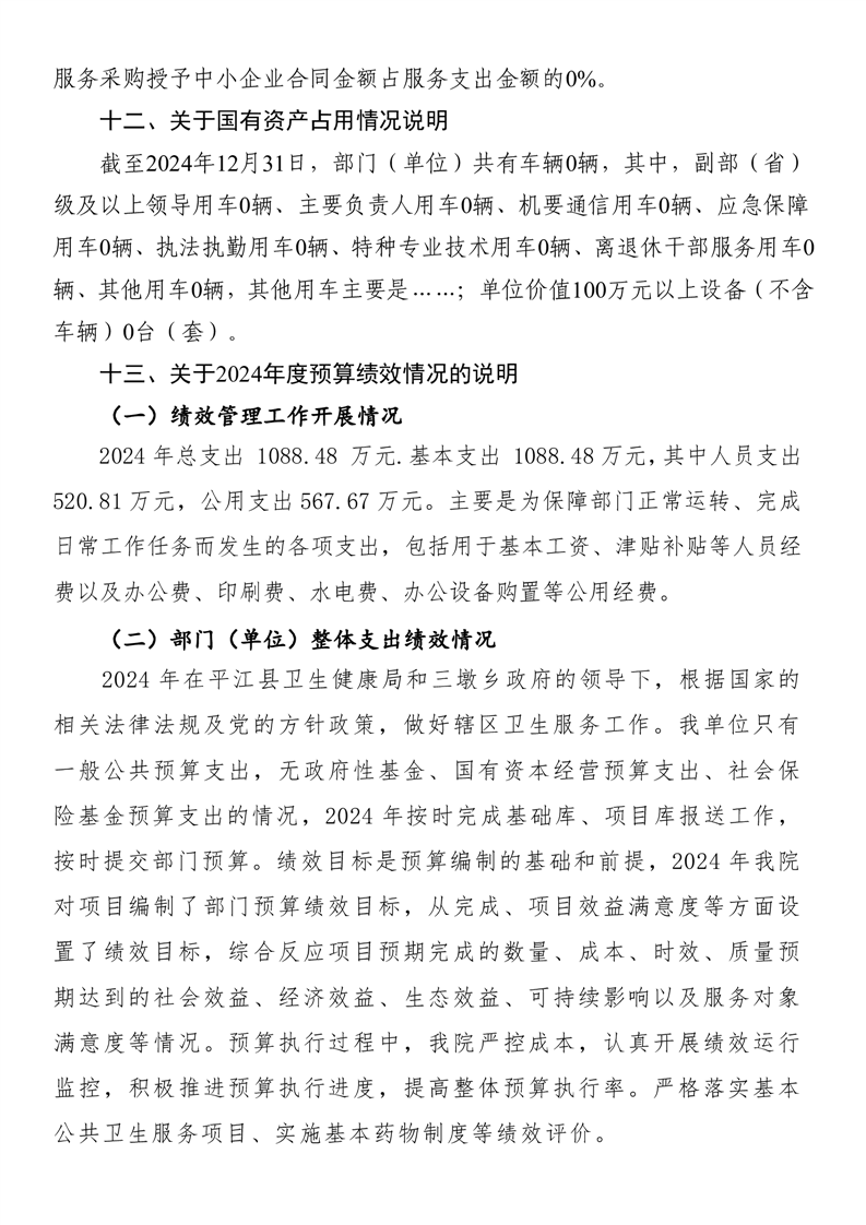 三墩乡卫生院2024年度部门决算公开