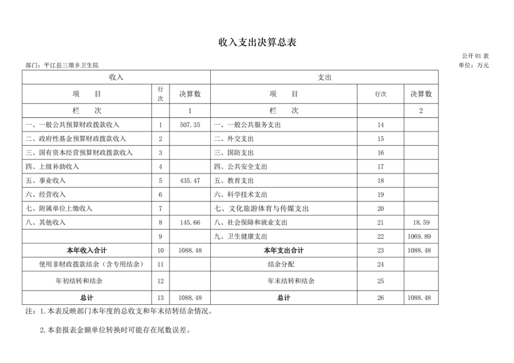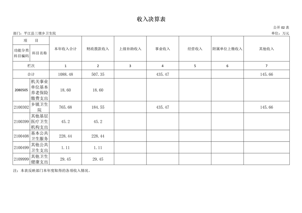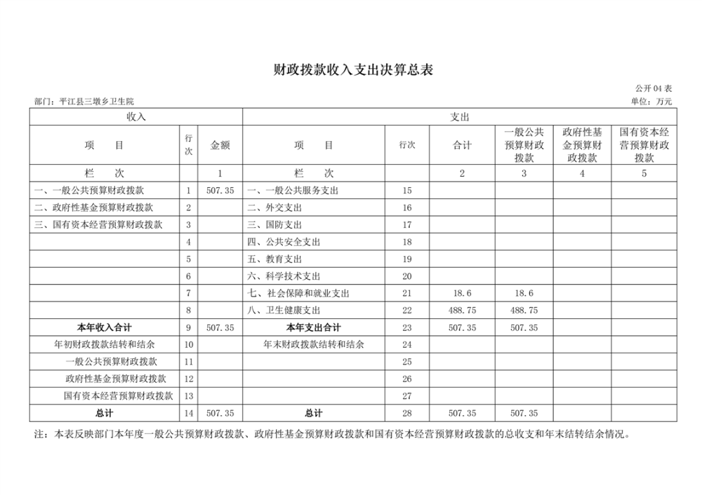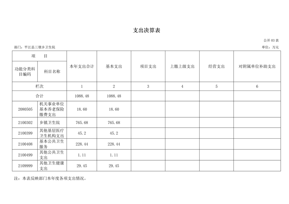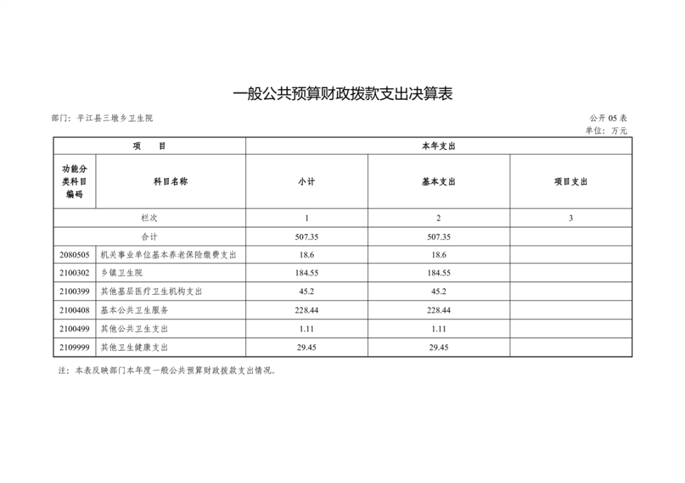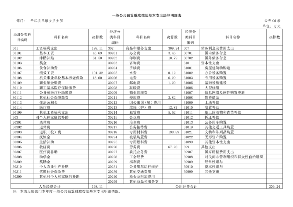 三墩乡卫生院2024年度部门决算公开