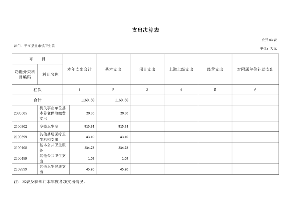 童市镇卫生院2024年度部门决算公开