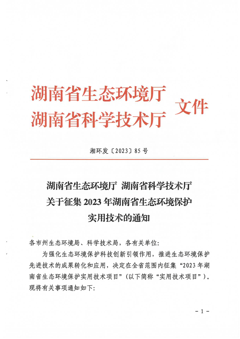 关于征集2023年湖南省生态环境保护实用技术的通知
