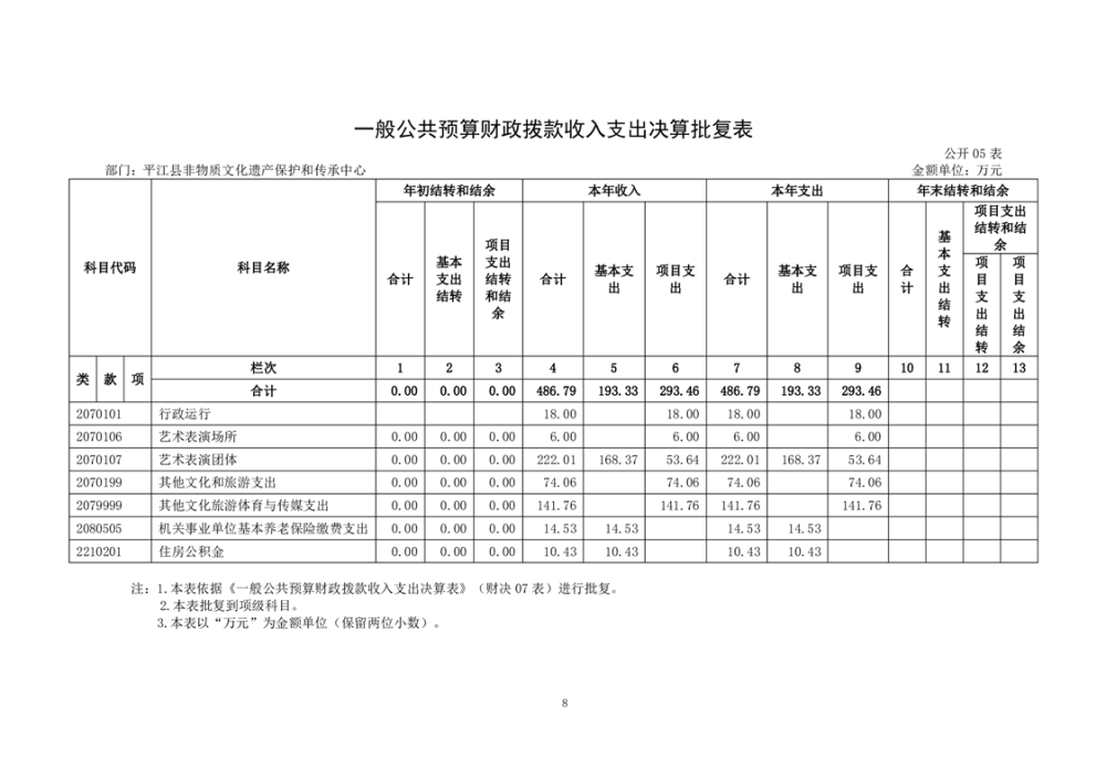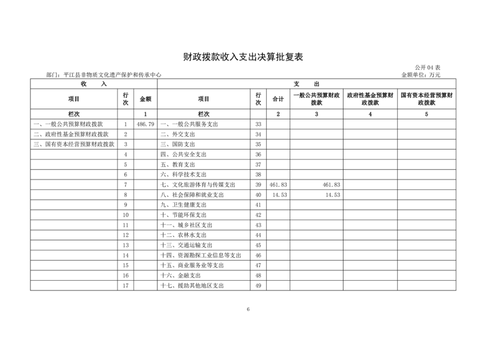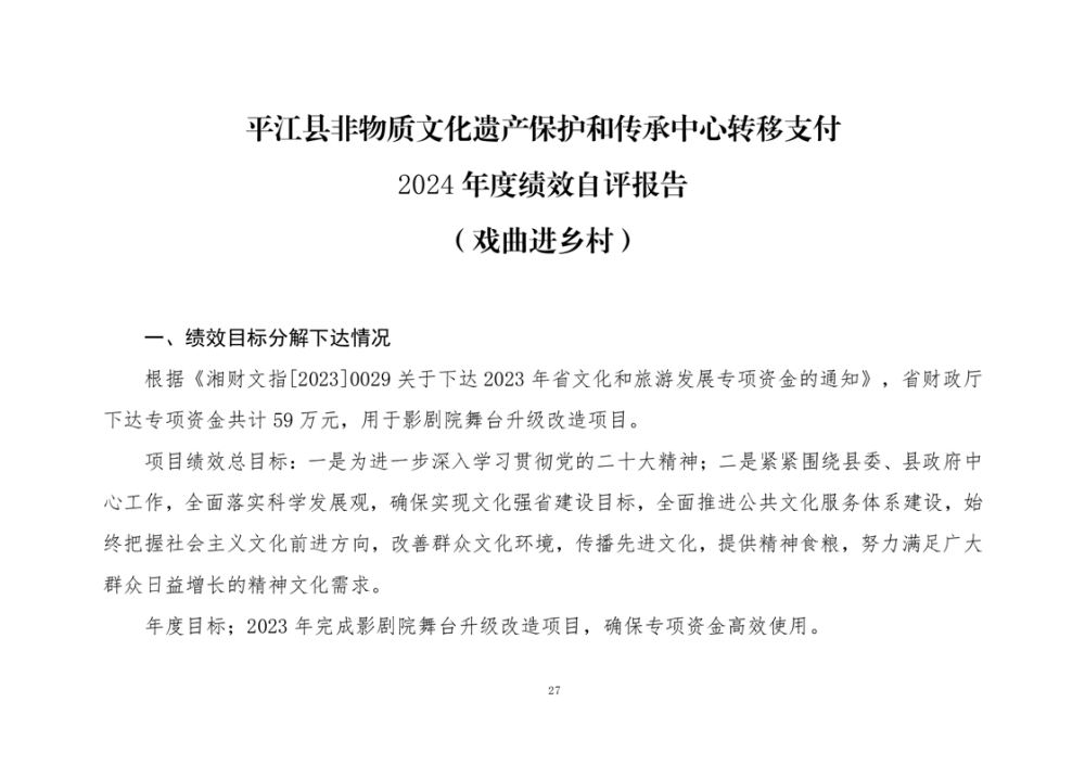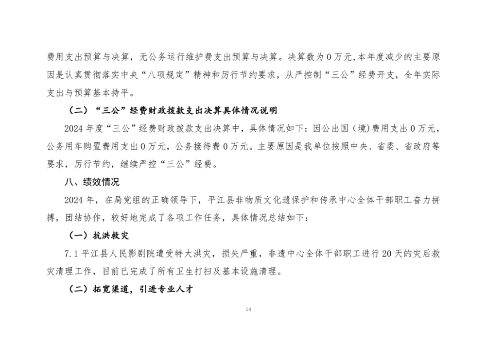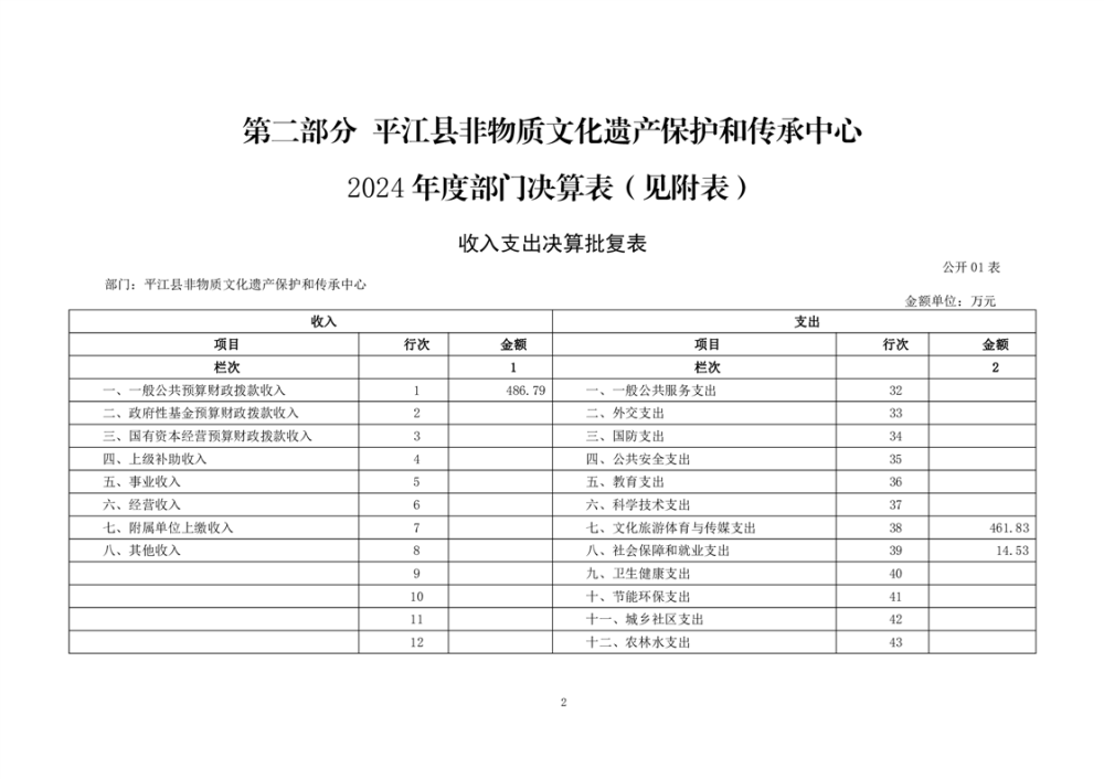 平江县非物质文化遗产保护和传承中心2024年部门决算公开