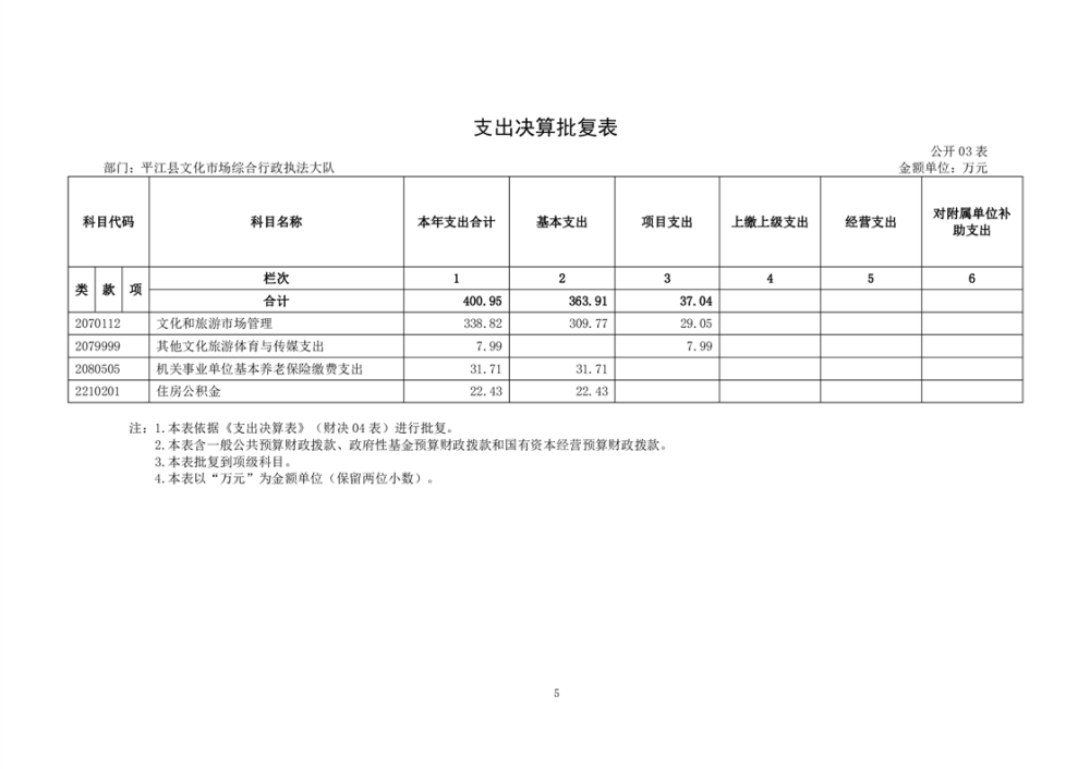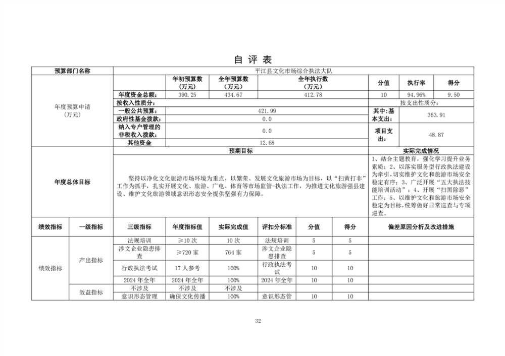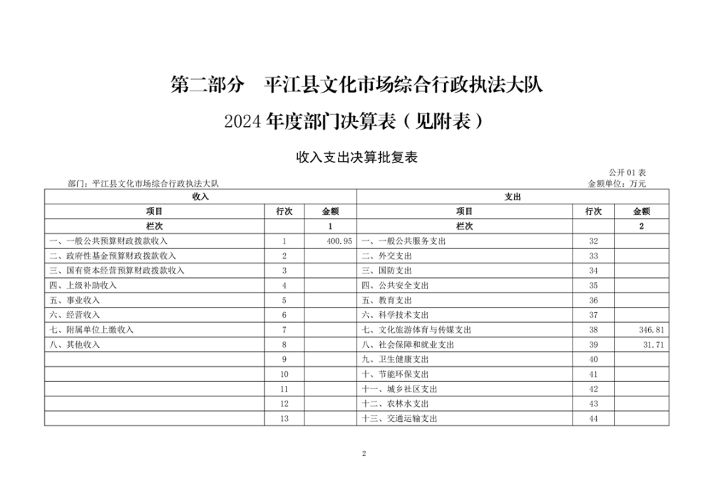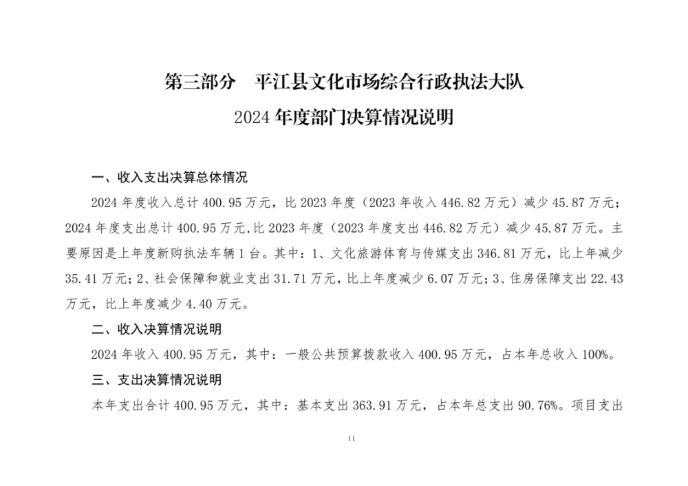 平江县文化市场综合行政执法大队2024年部门决算公开
