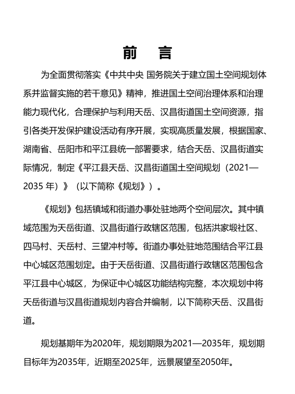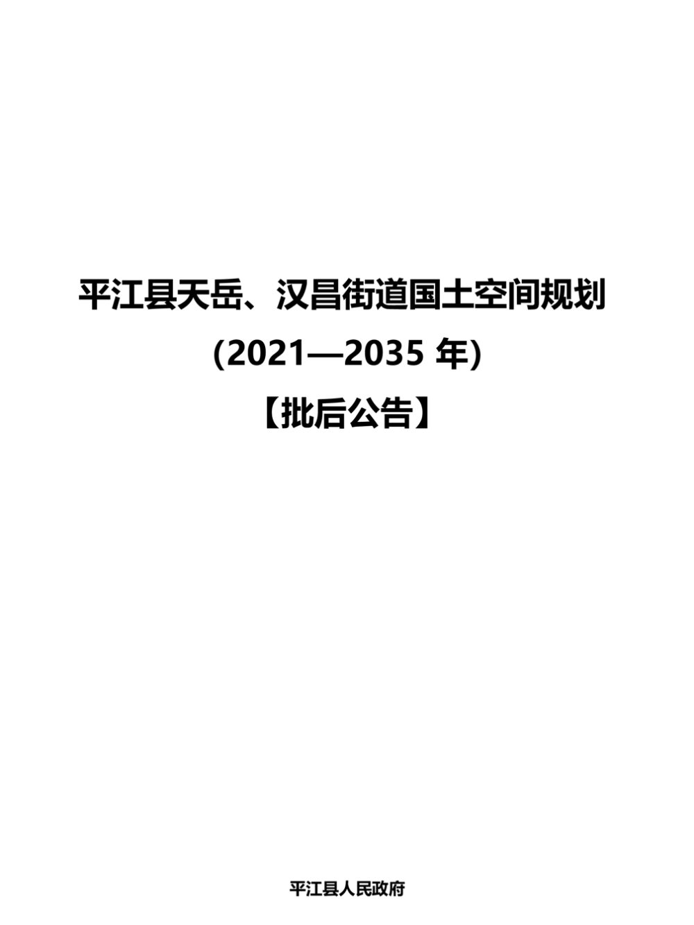 平江县天岳、汉昌街道国土空间规划(2021-2035年)批后公告