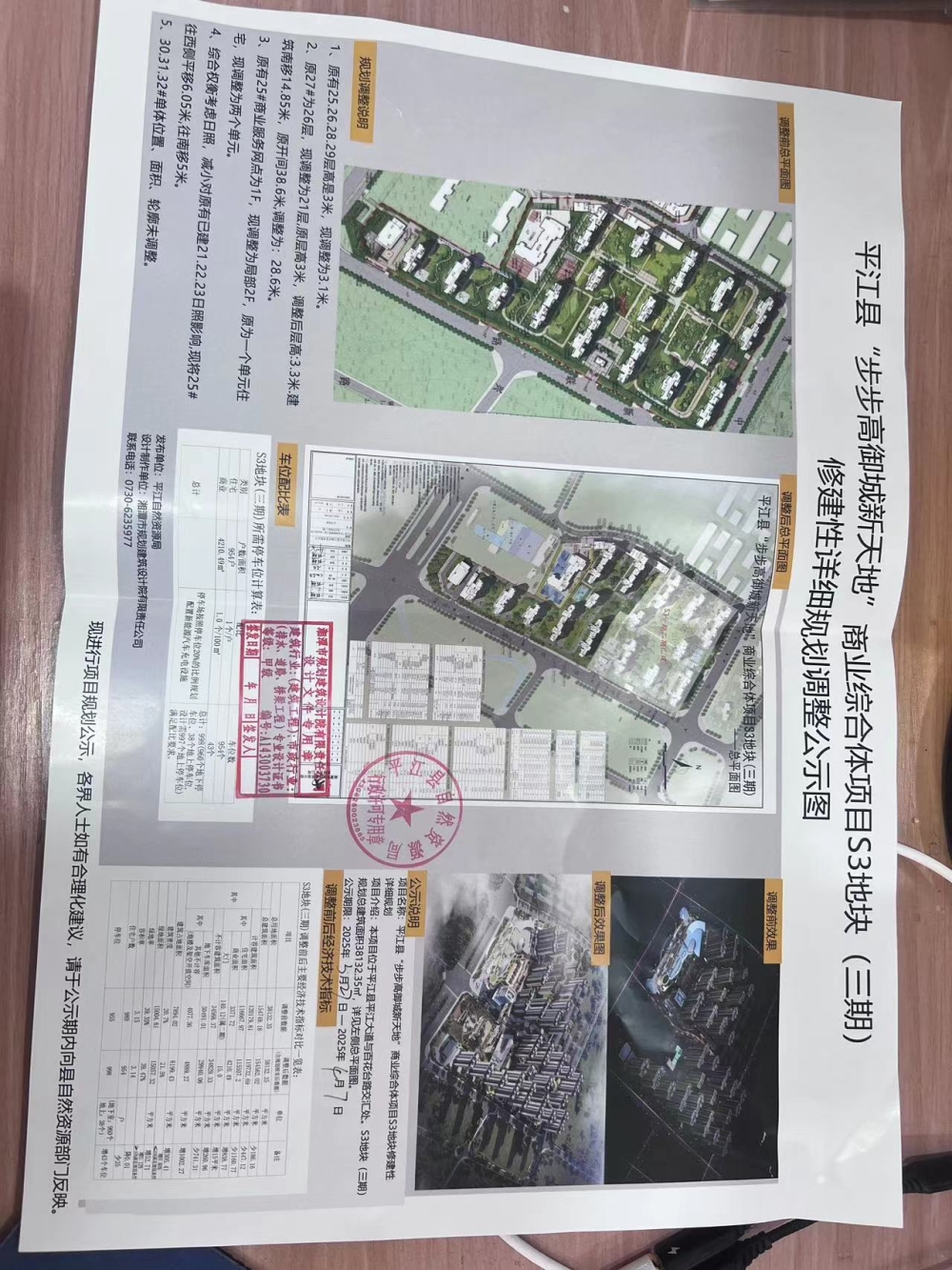 今有平江县天富土地开发有限公司向我局提交审查《平江县“步步高御城新天地”商业综合体S3地块(三期)修建性详细规划调整公示》的申请。现根据《中华人民共和国行政许可法》和《中华人民共和国城乡规划法》的规定,对该项目规划依法予以公示。