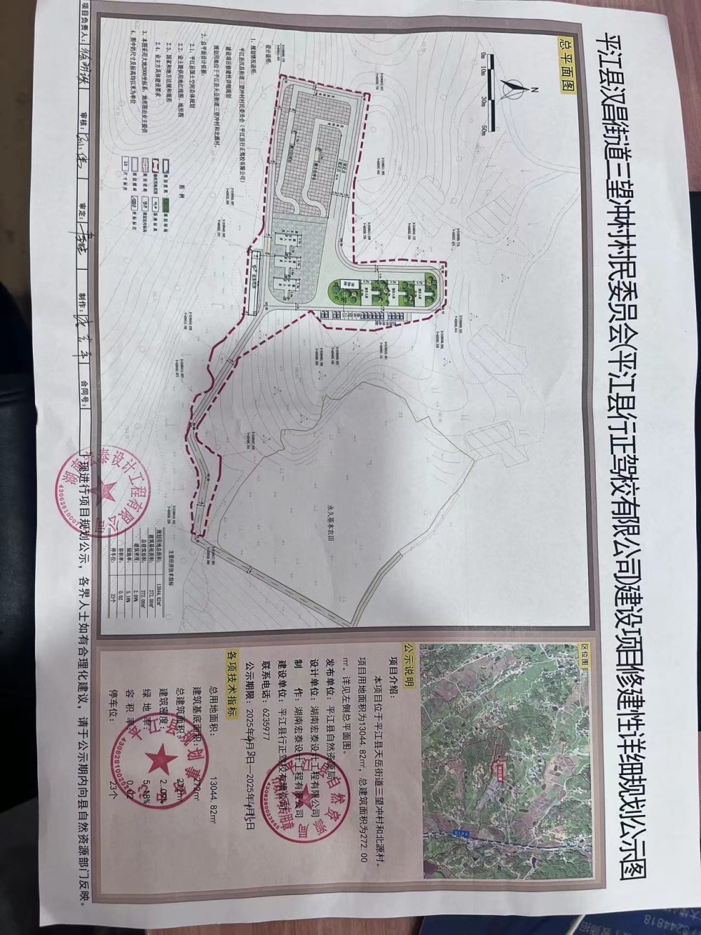 今有平江县汉昌街道三望冲村村民委员会向我局提交审查《平江县汉昌街道三望冲村村民委员会(平江县行正驾校有限公司)建设项目修建性详细规划公示》的申请。现根据《中华人民共和国行政许可法》和《中华人民共和国城乡规划法》的规定,对该项目规划依法予以公示。
