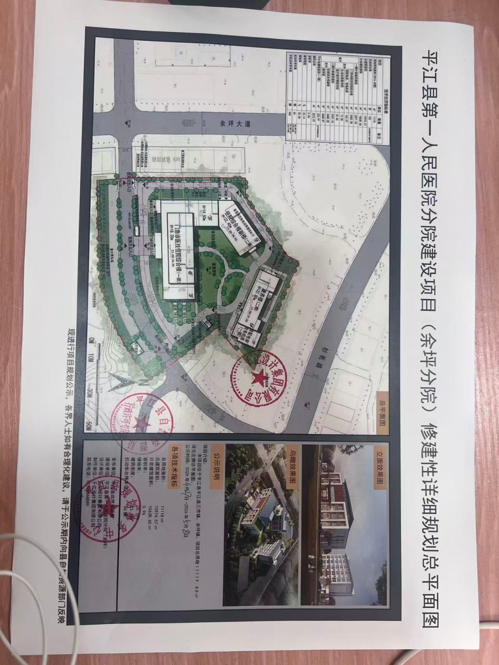 今平江县卫生健康局向我局提交审查《平江县第一人民医院分院建设项目(余坪分院)修建性详细规划公示》的申请。现根据《中华人民共和国行政许可法》和《中华人民共和国城乡规划法》的规定,对该项目规划依法予以公示。