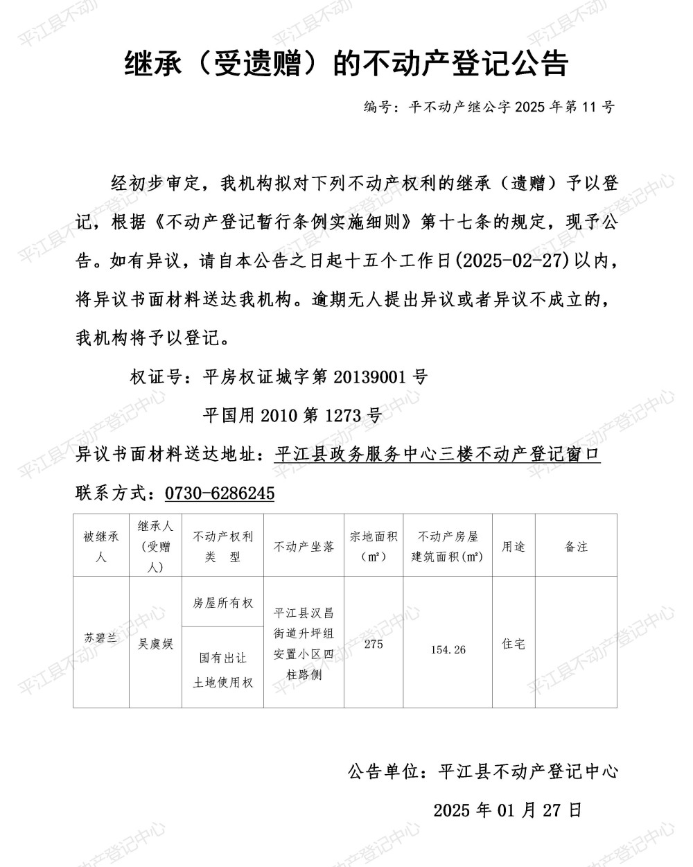 吴虞娱 继承不动产登记公告202511