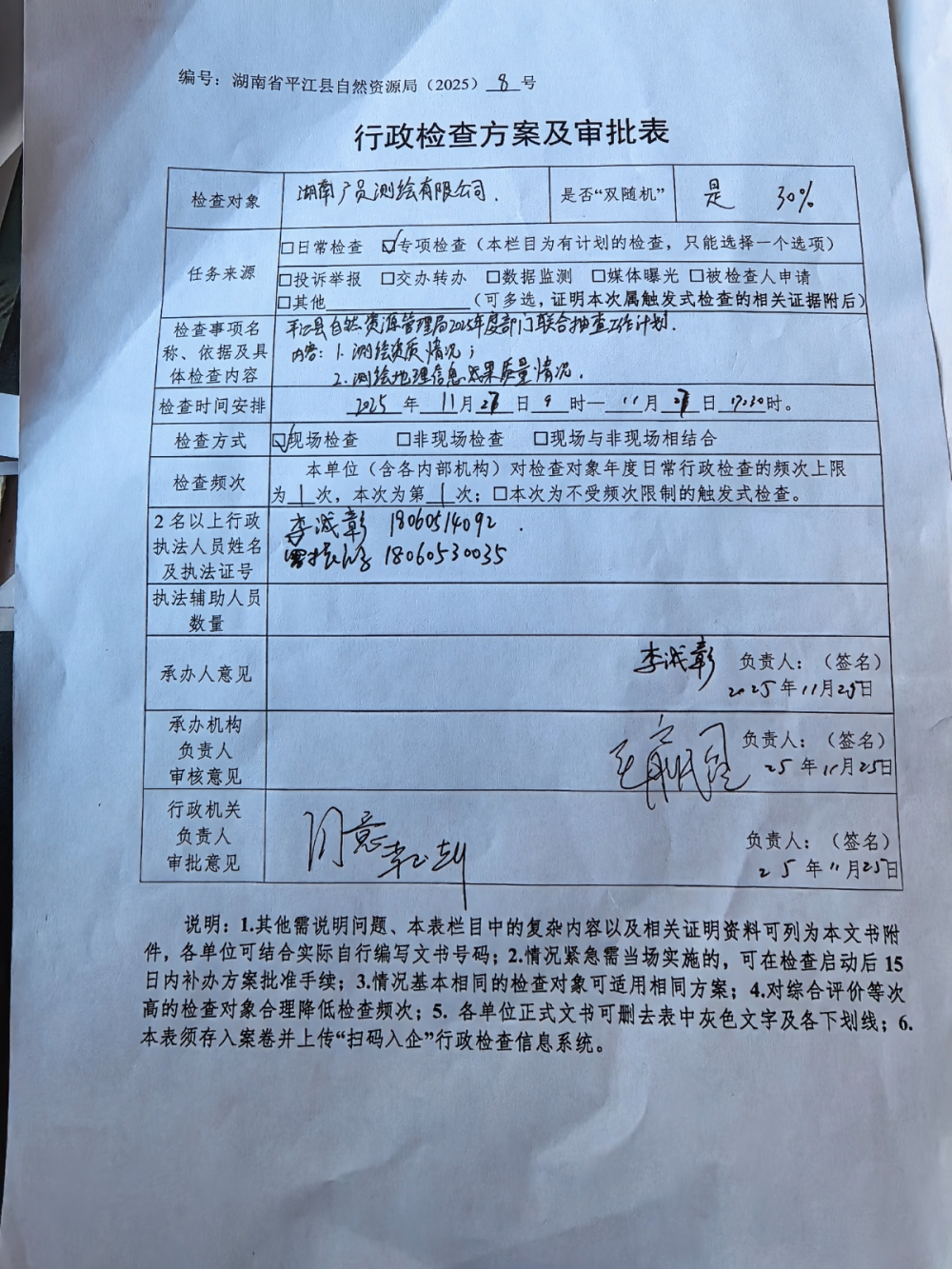 湖南广员测绘有限公司行政检查