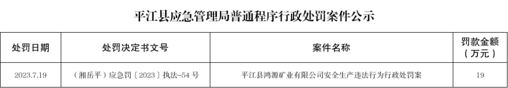 2023年平江县应急管理局普通程序处罚公示(7.19)