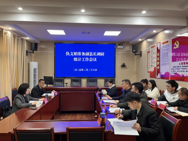 2月26日下午,平江县常务副县长仇文娟一行赴县统计局开展了一场深入细致的调研工作。调研过程中,常务副县长认真听取了统计局党组书记、局长凌浩关于统计机构人员、统计职能发挥以及当前经济运行情况的详细汇报,重点调研了2024年度主要经济指标的完成情况、重点行业的发展态势、当前工作存在的困难以及2025年度统计工作建议。