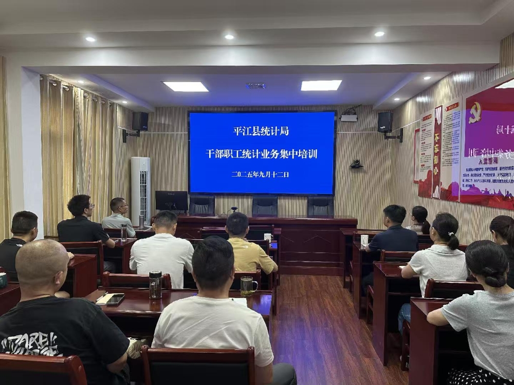 随着统计工作对数据精准度、分析深度及信息化技术应用要求的不断提升,为进一步夯实全局统计人员业务基础,规范统计流程,提升数据处理与分析能力,确保高质量完成各项统计任务。平江县统计局于9月12日上午9点组织全局干部职工在局机关会议室通过“统计网络培训平台”进行统计业务集中培训。