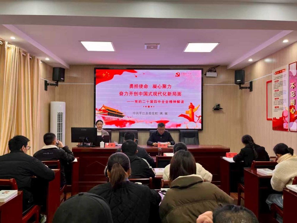 为深入学习贯彻党的二十届四中全会精神,切实把全局干部职工的思想和行动统一到全会精神上来,根据县委统一安排部署,近日,县统计局召开学习贯彻党的二十届四中全会精神县委宣讲团报告会。县委宣讲团姚敏教授应邀作专题辅导报告,局党组书记、局长主持会议并作强调讲话,局全体班子成员、干部职工及驻村工作队参加会议。