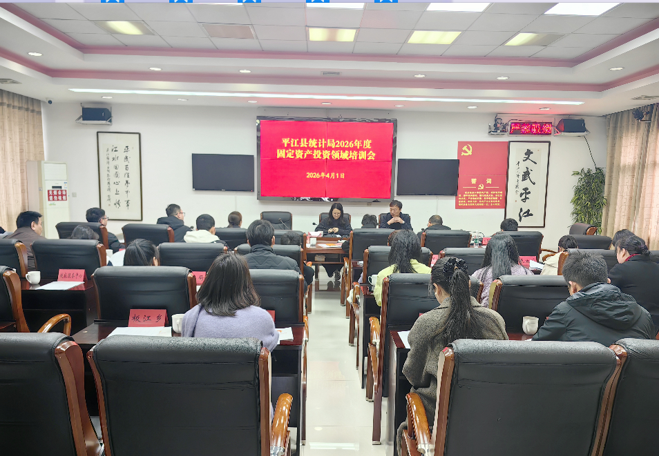 为贯彻落实湖南省统计局关于“三管三必须”的工作要求,扎实做好2026年固定资产投资项目入库与数据填报工作,4月1日,平江县统计局组织召开2026年度固定资产投资领域业务培训会议,县直与乡镇部门及所属项目业主单位参会。本次培训会旨在提升项目统计人员业务能力,夯实投资领域数据质量。