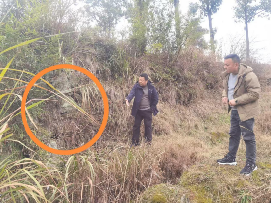 平江县农村公路服务所所长余峰和副所长王峰发现X010挡土墙墙身“开鼓”