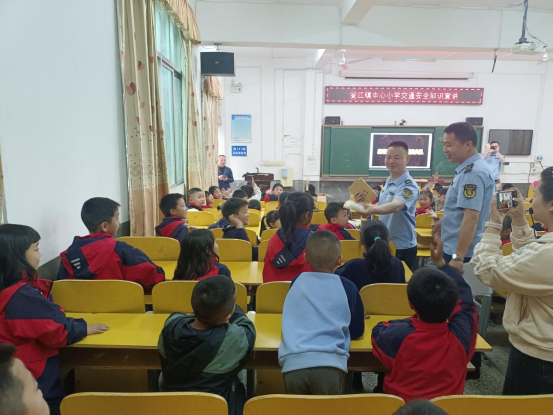 活动现场,工作人员结合小学生认知特点和出行实际,创新采用“观看宣传片+观看警示片+互动问答+发放宣传册”的多元形式,全方位、多角度普及交通安全知识。重点围绕道路交通安全和水上交通安全两大板块,用通俗易懂的语言讲解交通规则、出行注意事项,通过典型警示案例剖析违规出行的危害,引导学生深刻认识到安全出行的重要性;互动问答环节中,工作人员抛出交通安全相关问题,学生们积极举手、踊跃抢答,在轻松愉悦的氛围中巩固所学知识;同时,工作人员向学生发放宣传册,详细解读其中的安全要点,让交通安全知识入脑入心,切实引导学生树立“安全第一、文明出行”的理念,提升生命安全保障能力。活动期间,工作人员还为学生们发放了本子、笔等学习用品,传递对孩子们的关爱与期许,鼓励孩子们珍爱生命、努力学习、快乐成长。