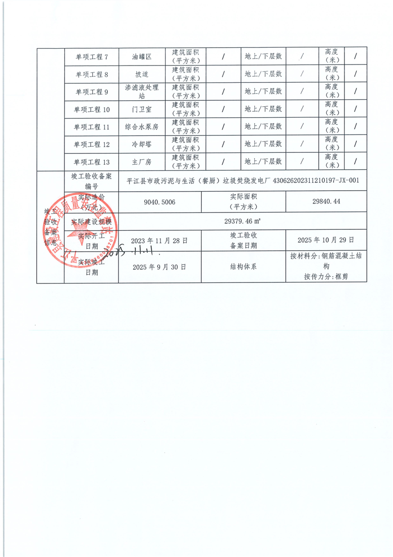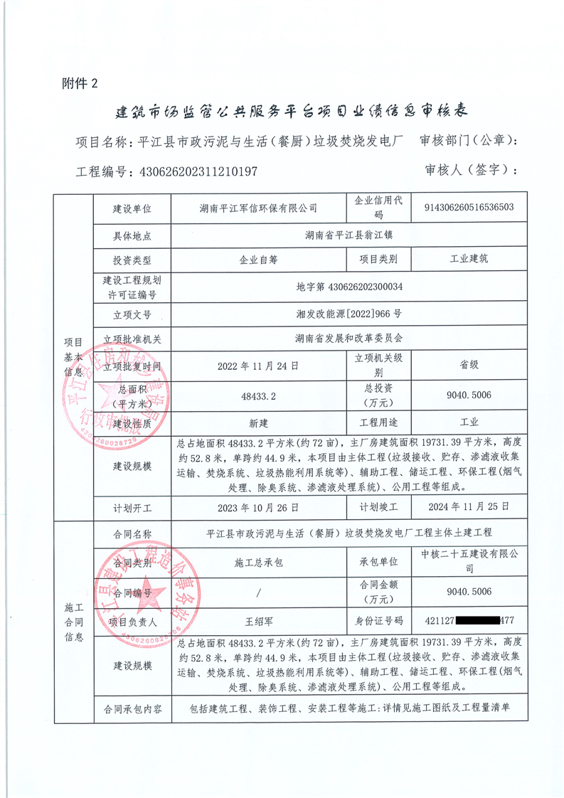 建筑市场监管公共服务平台项目业绩信息审核表-平江县市政污泥与生活(餐厨)垃圾焚烧发电厂