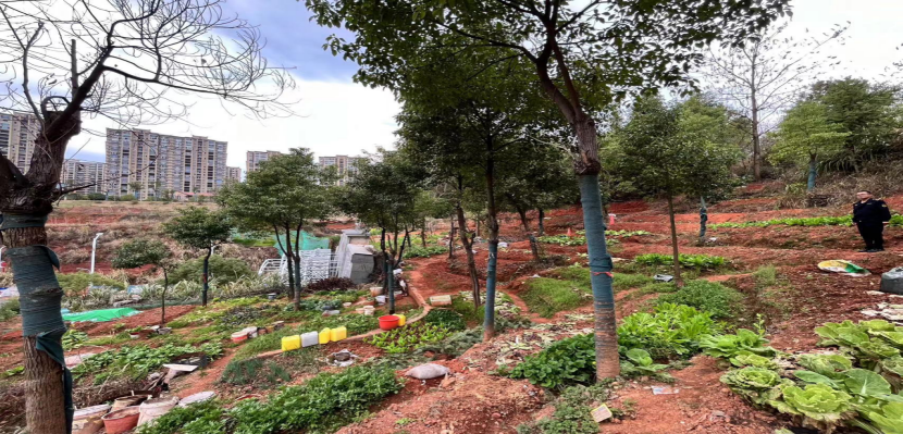 3月15日,城市公园所事务所执法队员在巡查过程中发现,人民公园后山有市民私自垦种了不少菜。当日,城市公园事务所负责人立即同社区工作人员、物业工作人员前往现场查看公园绿地破坏情况。
