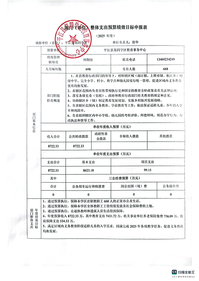 平江县第四学区教育事务中心2025年部门预算公开