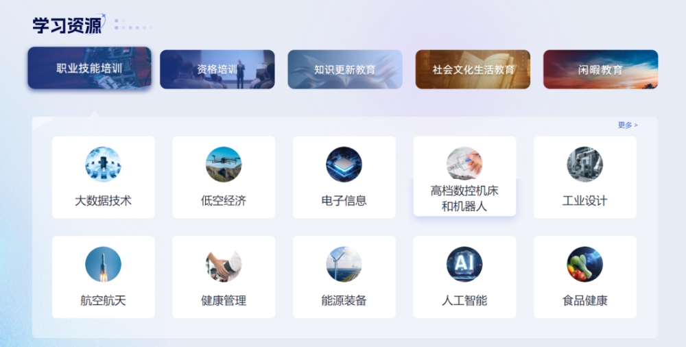 聚焦构建泛在可及的终身教育体系,设置“学习资源”“公共服务”等专栏,支持职业能力提升和持续发展,提升终身学习服务品质。