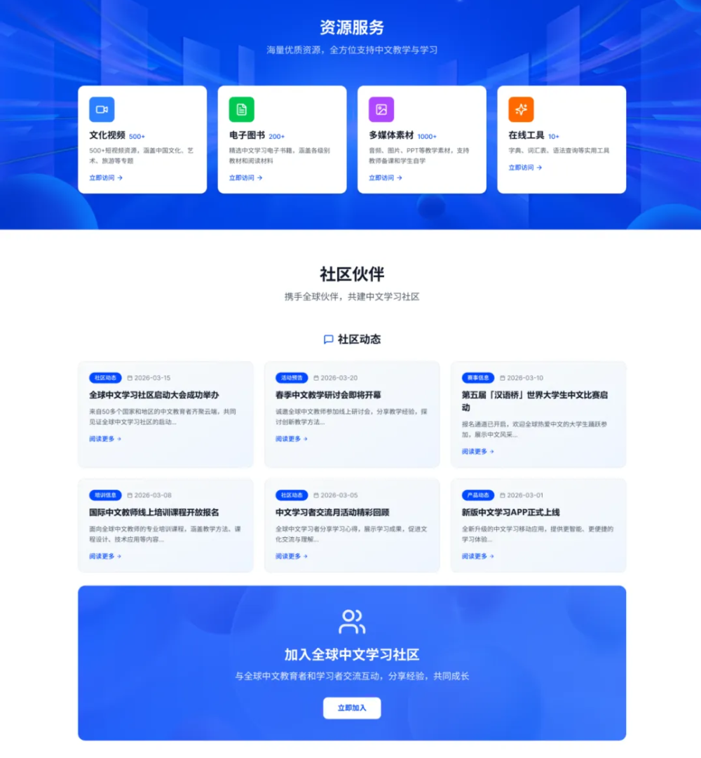 中心聚焦服务全球中文教学需求,设置“中文学习”“资源服务”等专栏,提供多语种课程资源,多元视角讲述中国故事,推动国际中文教育迈入智能、便捷、高效新阶段。