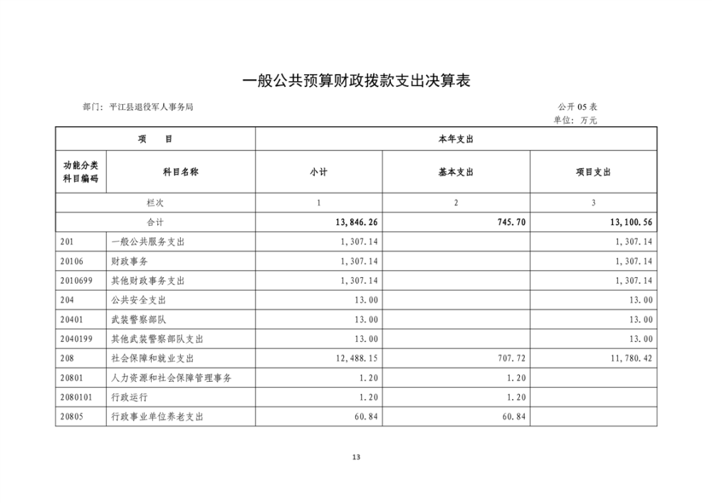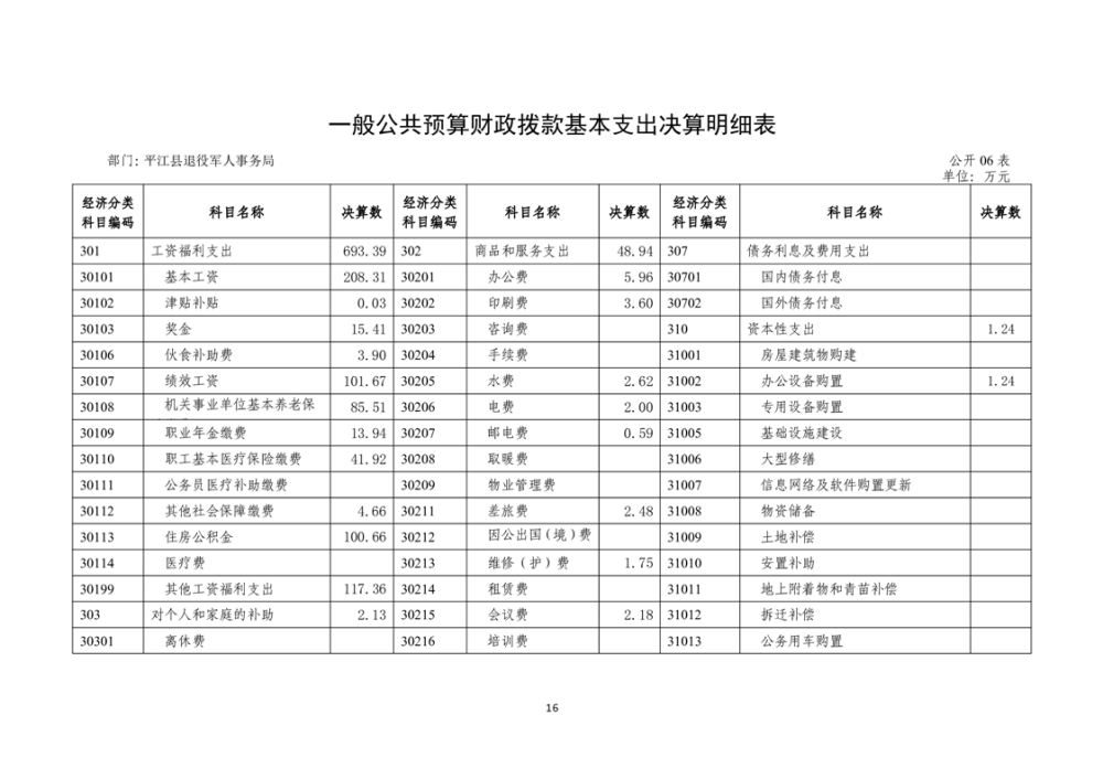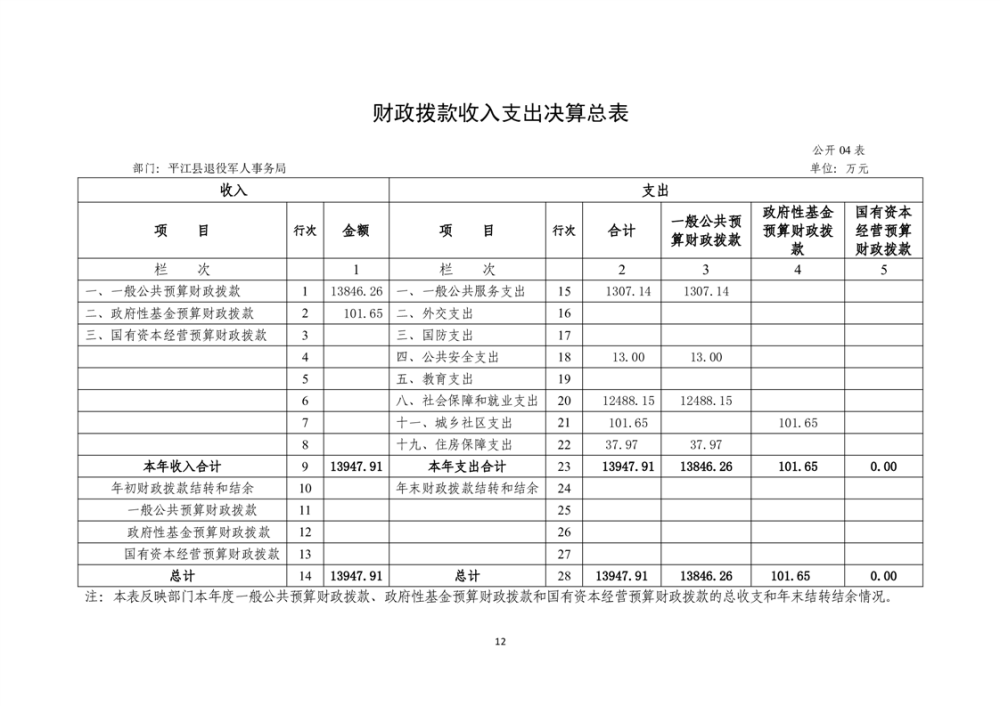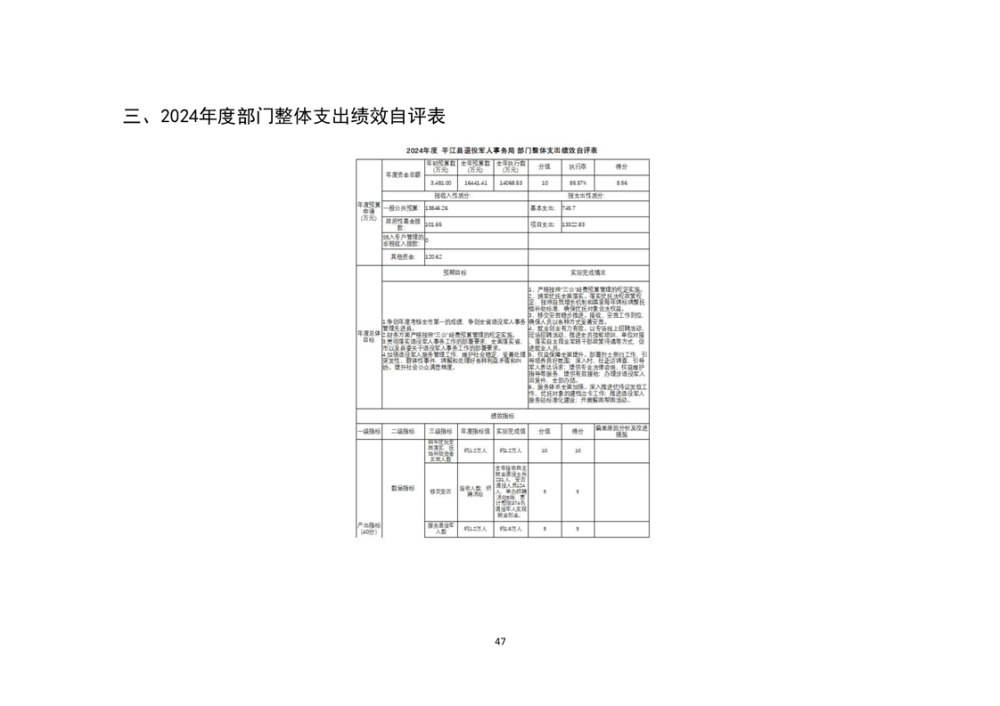 2024年度平江县退役军人事务局部门(单位) 部门决算