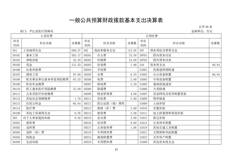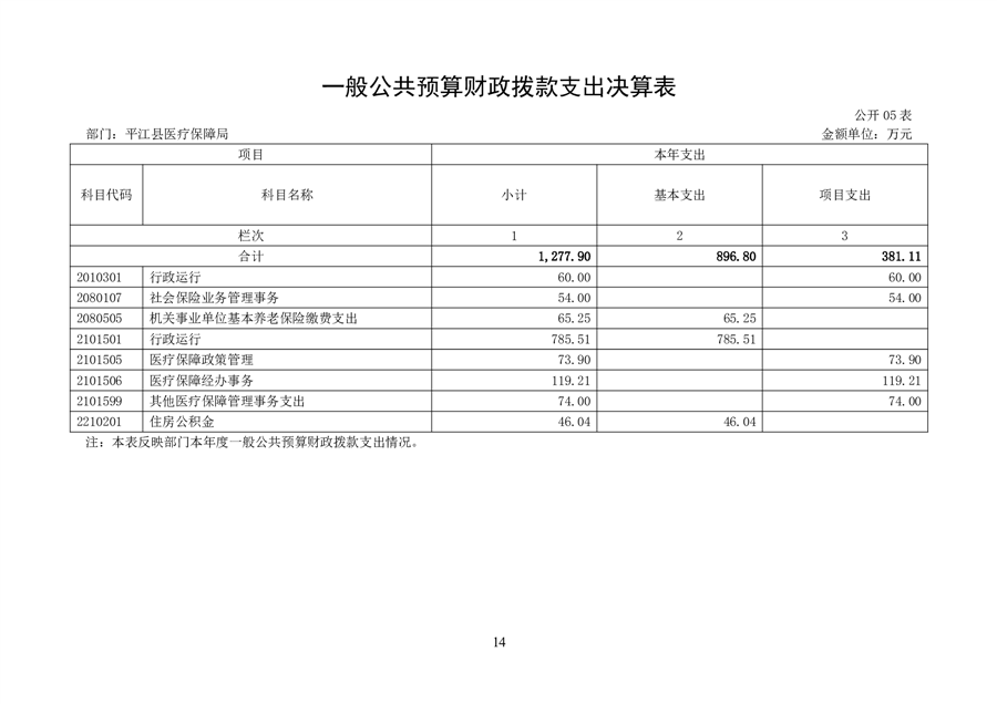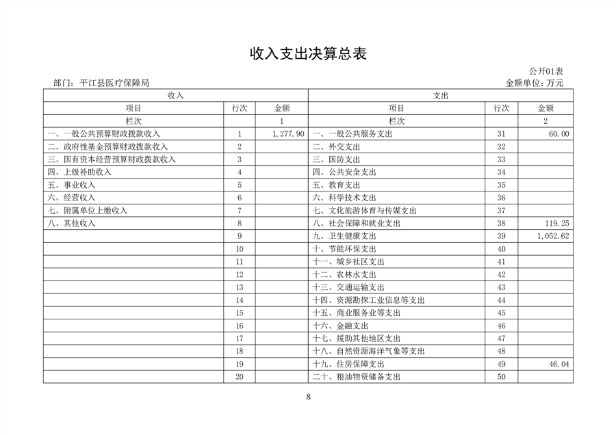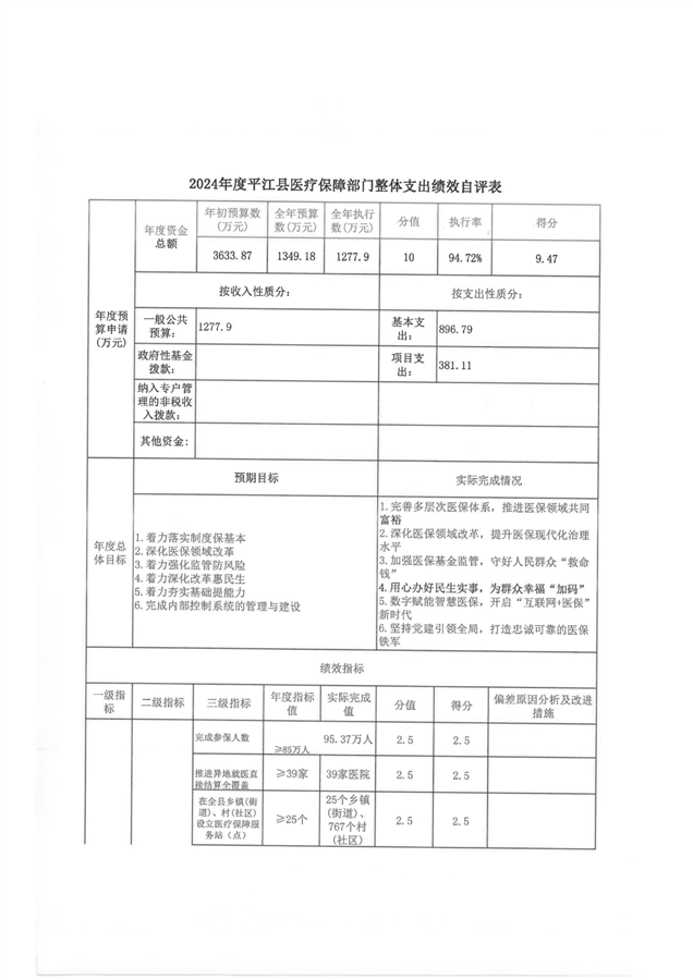 2024年度平江县医疗保障局部门决算公开