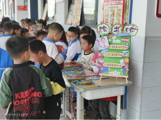 活动当天,各班学生早早来到指定区域,精心布置自己的“书店”。每个班级设计了独特的店名和摊位装饰,如“智慧书屋”“童心书社”等,吸引了众多同学驻足。学生们不仅带来了自己读过的书籍,还准备了手工制品进行义卖,现场气氛热烈。