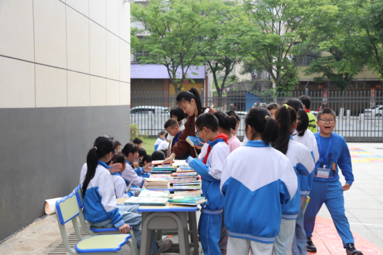 “我买一本《三国演义》。”“大本3元,小本2元。”“大本。”跳蚤书市还没开始,141班的同学已经迫不及待地购买自己喜爱的书籍了。4月23日上午,启明中学小学部洋溢着浓郁的书香气息,“书香流转典韵长存”跳蚤书市活动在学校前后坪如期举行。