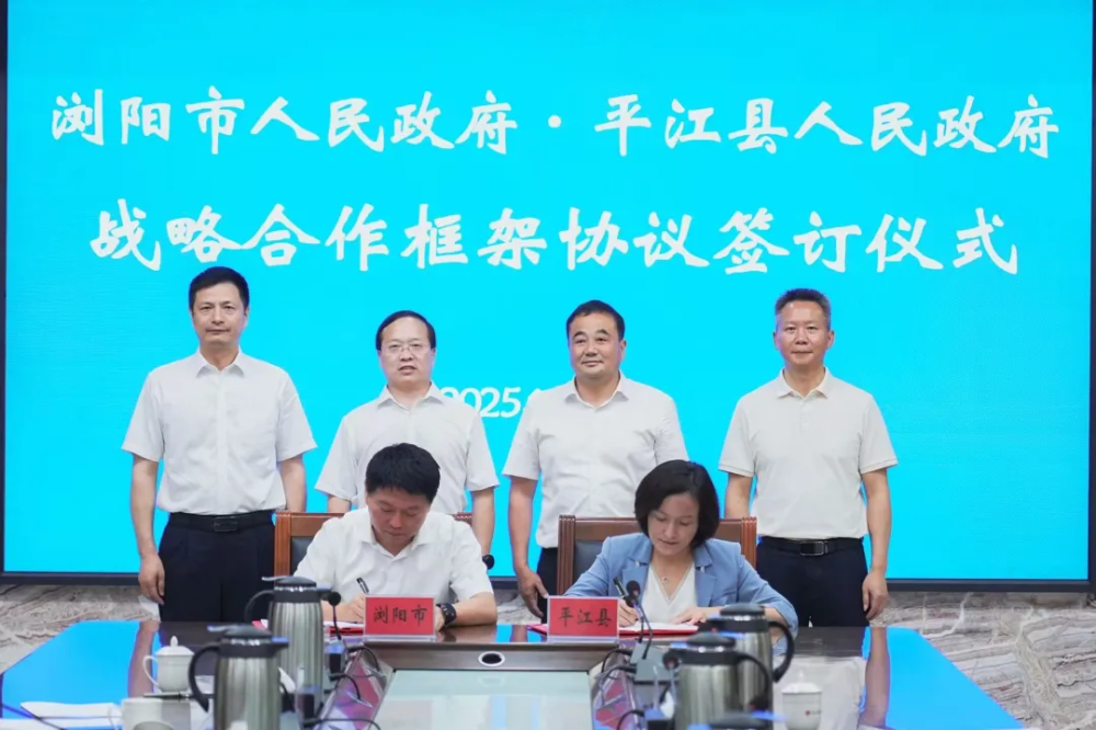 “浏阳和平江地缘相接、人缘相亲、文缘相融,历来都是山水相依的好邻居、合作共赢的好伙伴、真诚互信的好兄弟,彼此的深厚情谊源远流长。”刘正仁表示,希望双方以此次考察为契机,进一步强化产业共兴,共同推动产业链上下游有机融合与协同发展,共建跨区域特色产业链群;进一步强化交通共联,一起推进岳平浏高速早日动工建设,持续完善交通互联互通网络;进一步强化服务共享,在就业、教育、医疗、旅游、生态等方面达成更深层次、更广领域合作,合力打造区域合作示范样板;进一步强化机制共建,在政策争取、产业发展、项目建设等方面深入谋划、协同发力,共同确保各项协议条款落到实处、见到实效。(谢鸿)