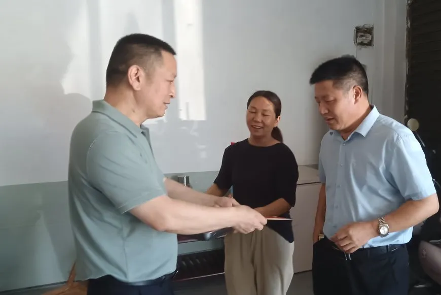 6月27日,县政协副主席吴向前到童市镇走访慰问党员代表。