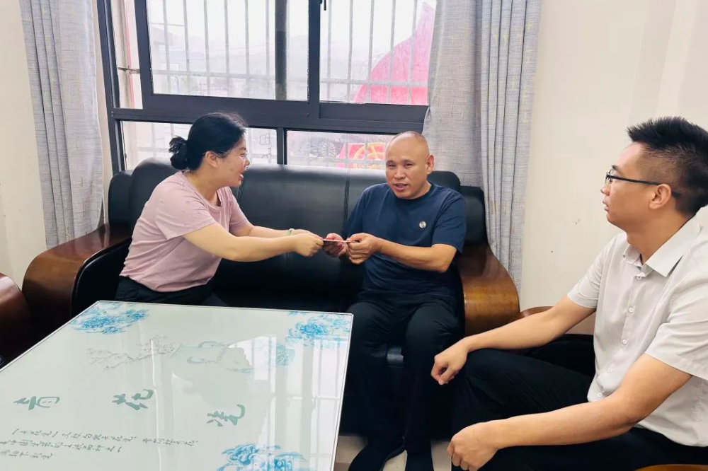 6月27日,副县长朱远到大洲乡看望慰问“基层治理好邻长”。