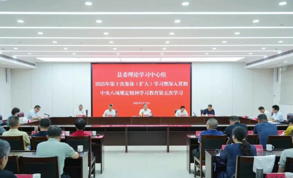 9月15日,县委书记刘正仁主持召开县委理论学习中心组2025年第十次集体(扩大)学习暨深入贯彻中央八项规定精神学习教育第五次学习,强调要认真贯彻落实习近平总书记在二十届中央政治局第二十一次集体学习时的重要讲话精神,落实上级有关文件和会议精神,抓好抓实学习教育后续工作,锲而不舍推进作风建设常态化长效化,为全县高质量发展提供坚强保障。