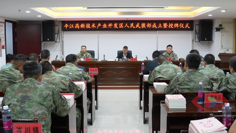 仪式上宣读了《关于在平江县高新技术产业园区设立武装部的批复》及相关任职命令。随后,与会领导共同向平江高新技术产业开发区人民武装部授牌。